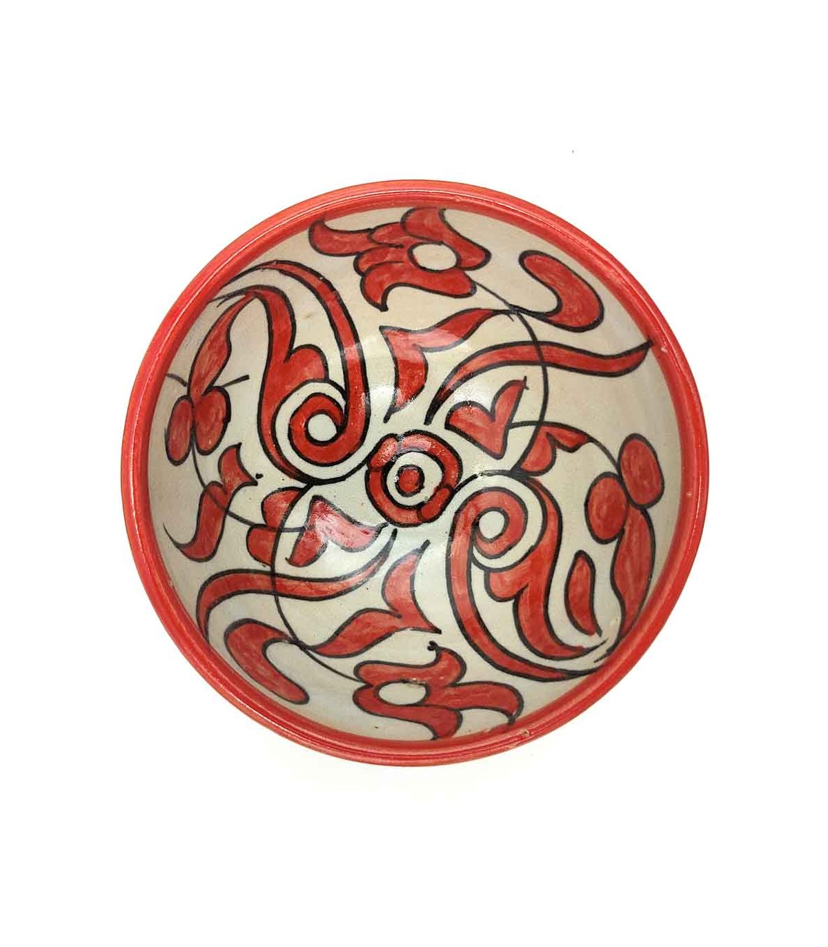 Bol / Bol / Bol Fait Main Céramique - Couleur Rouge - Artisanat Marocain - Design Floral Andalou - Modèle Tasaluq