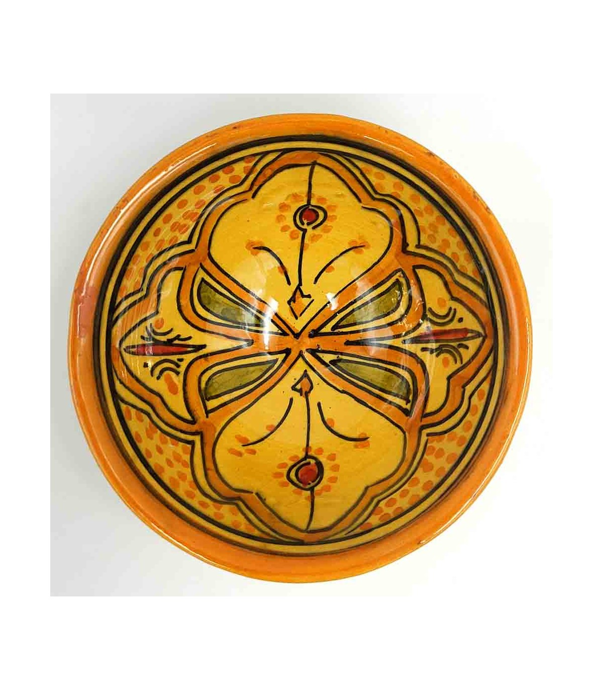 Bol en céramique de la célèbre ville d'Asfi ou Safi au Maroc. Où ils fabriquent des céramiques dans le style andalou qui se transmet de maître en maître, en conservant la technique et les couleurs de l'ancien Al-Andalus.Si vous souhaitez décorer votre maison dans le style arabe authentique, vous pouvez utiliser ces bols comme épices, sauce, pour les apéritifs... Parfait pour décorer votre table et pour que vos invités soient vraiment enchantés par les couleurs vives de la poterie marocaine peinte à la main. La taille et les motifs peuvent varier légèrement, car il s'agit d'un artisanat, il varie toujours un peu, mais en conservant la tonalité. Disponible plus de couleurs et de modèles cliquez sur ICITaille : Taille 1 : 8 x 3 cm Taille 2: 12x4.5cm