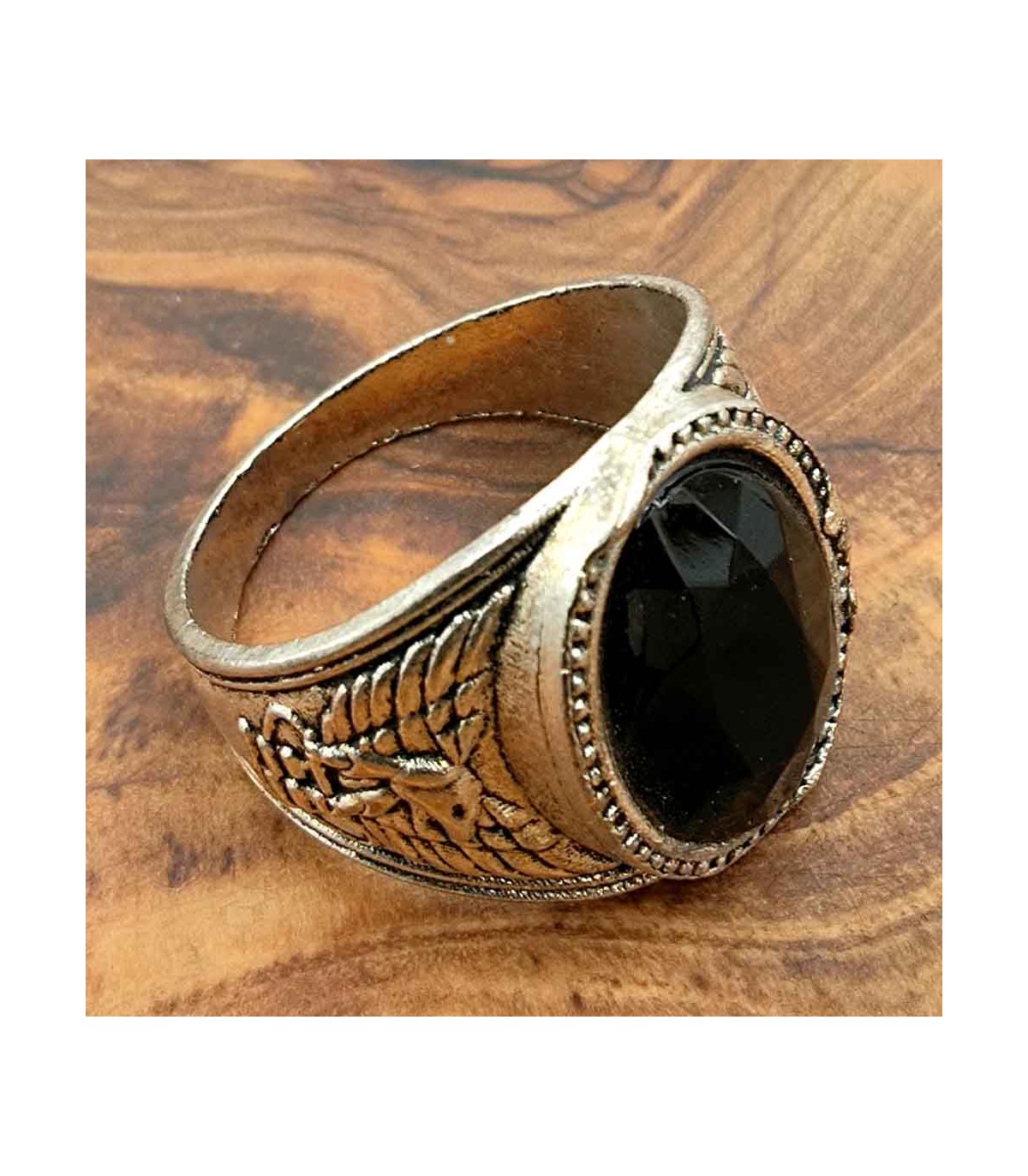 Anello Unisex in Lega Inossidabile - Pietra Nera - Stile Medievale Gotico - Modello Arbaa Ashrin Ahmar
