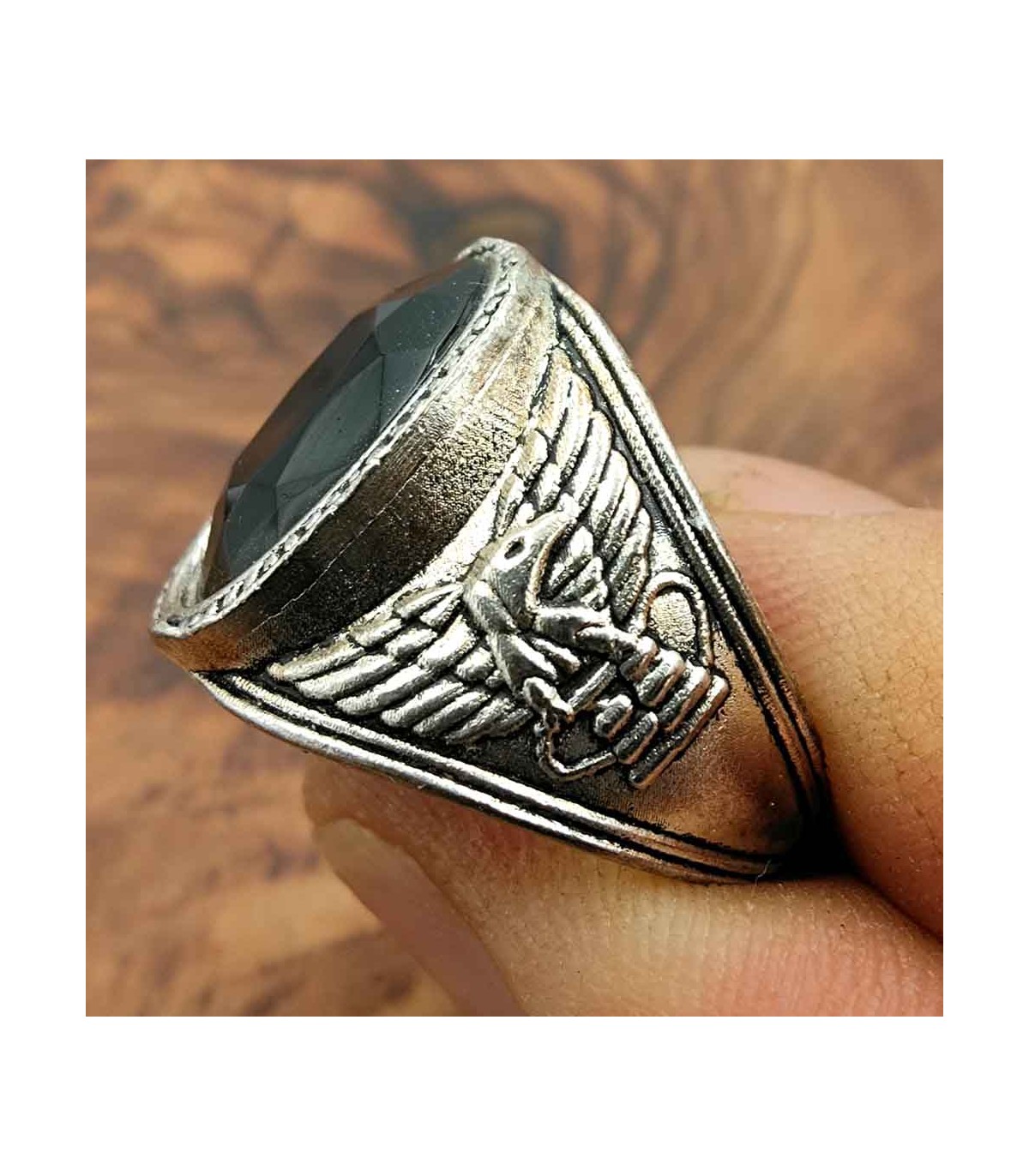 Anello in stile gotico medievale, da gentiluomo. Il metallo è una lega Inox. La pietra è realizzata in resina sintetica