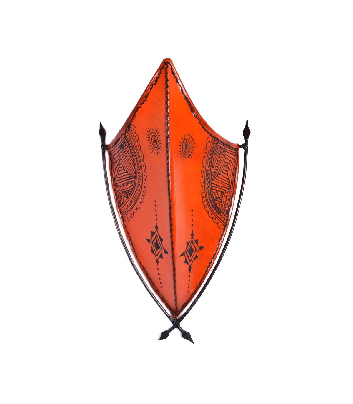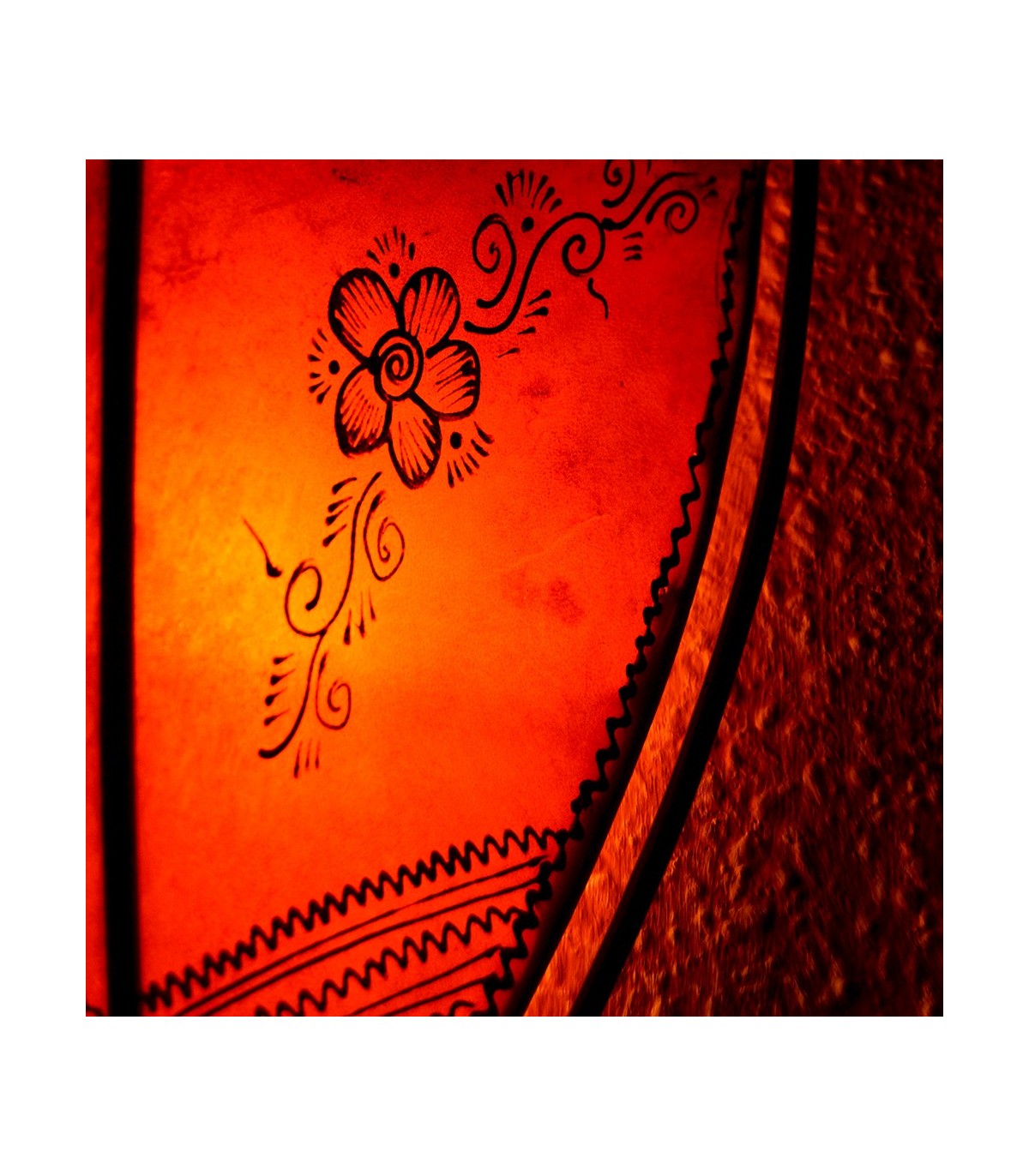 Artigiano muro realizzato con fondo cuoio (capra solitamente) e decorata con disegni etnici di hennè.