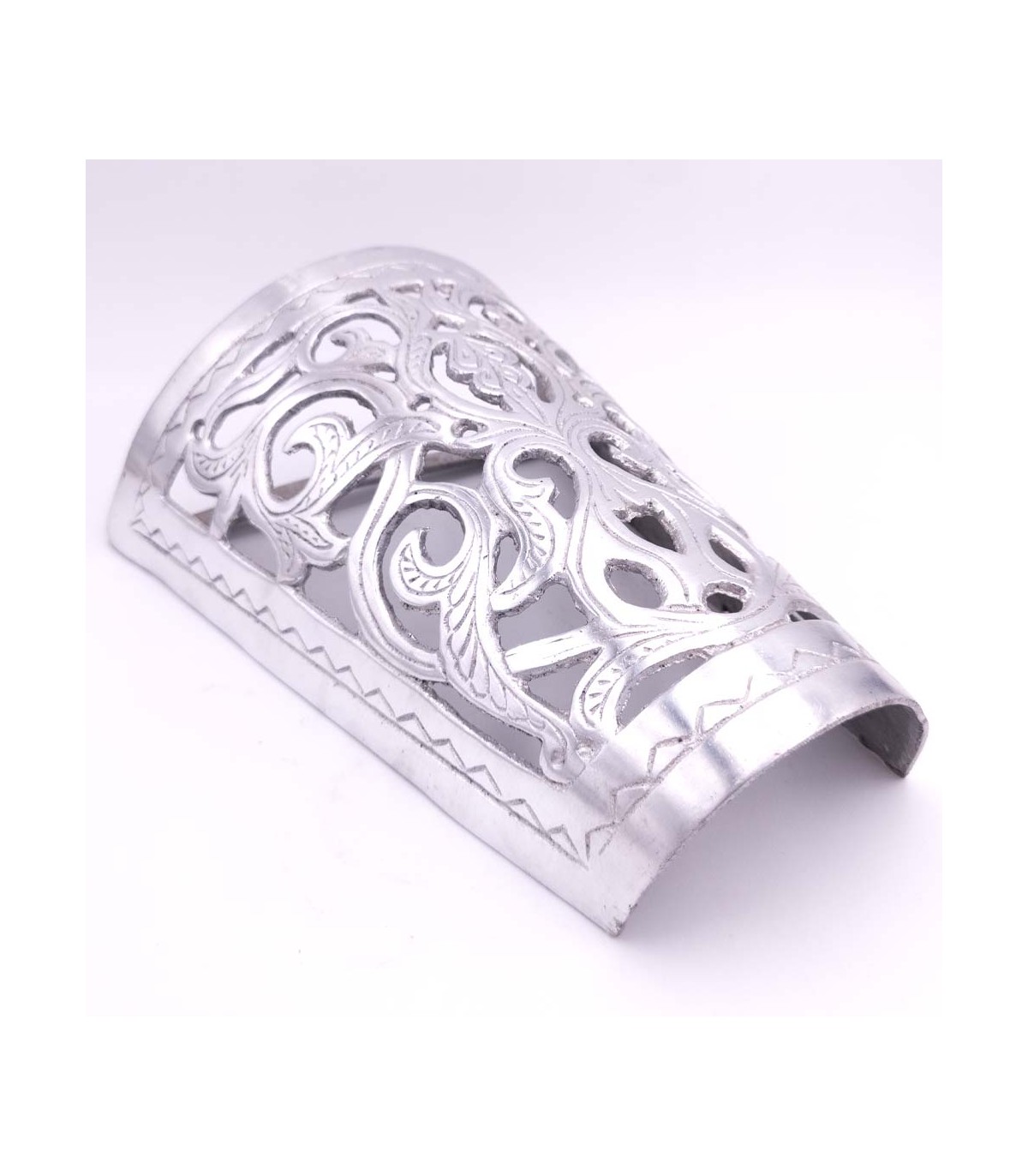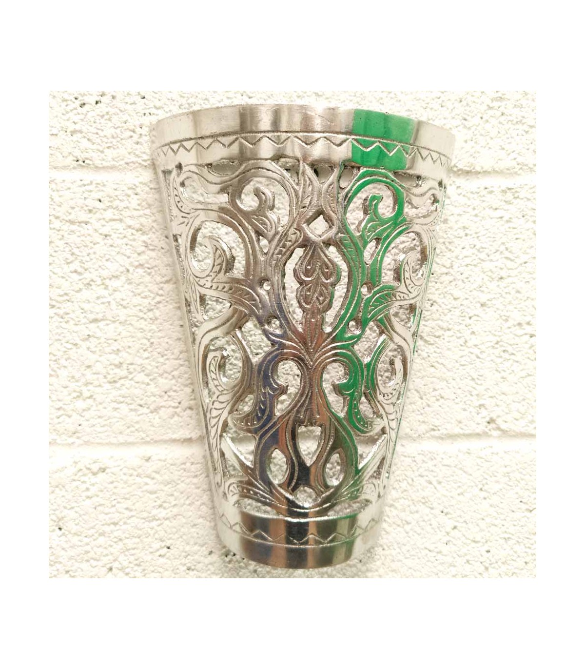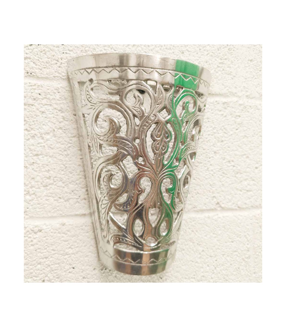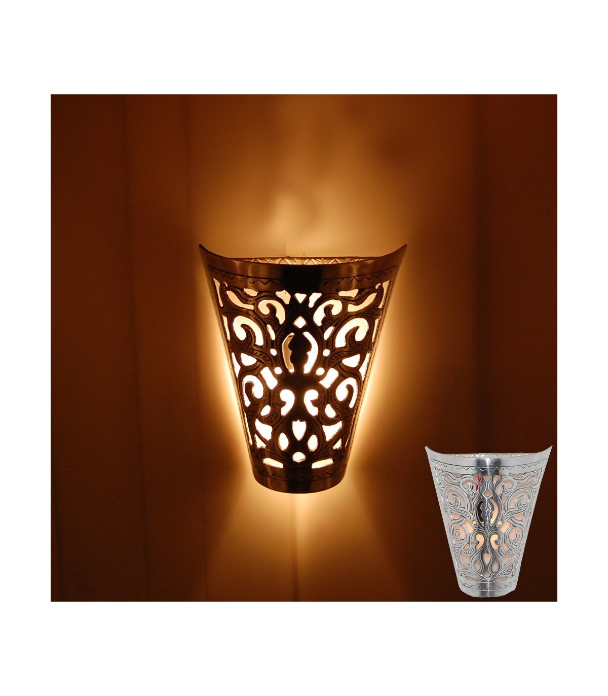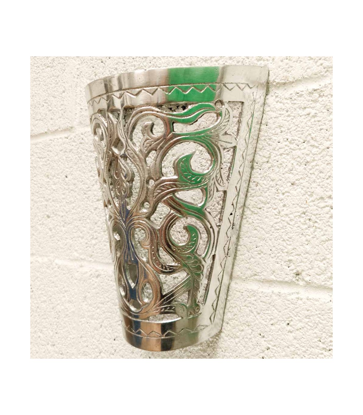 Applicare a mano realizzato in alluminio lucidato. Progettato con motivi traforati. Prodotto molto attraente e ben rifinito. È elegante sia off e on. Misure: 28 x 25 cm