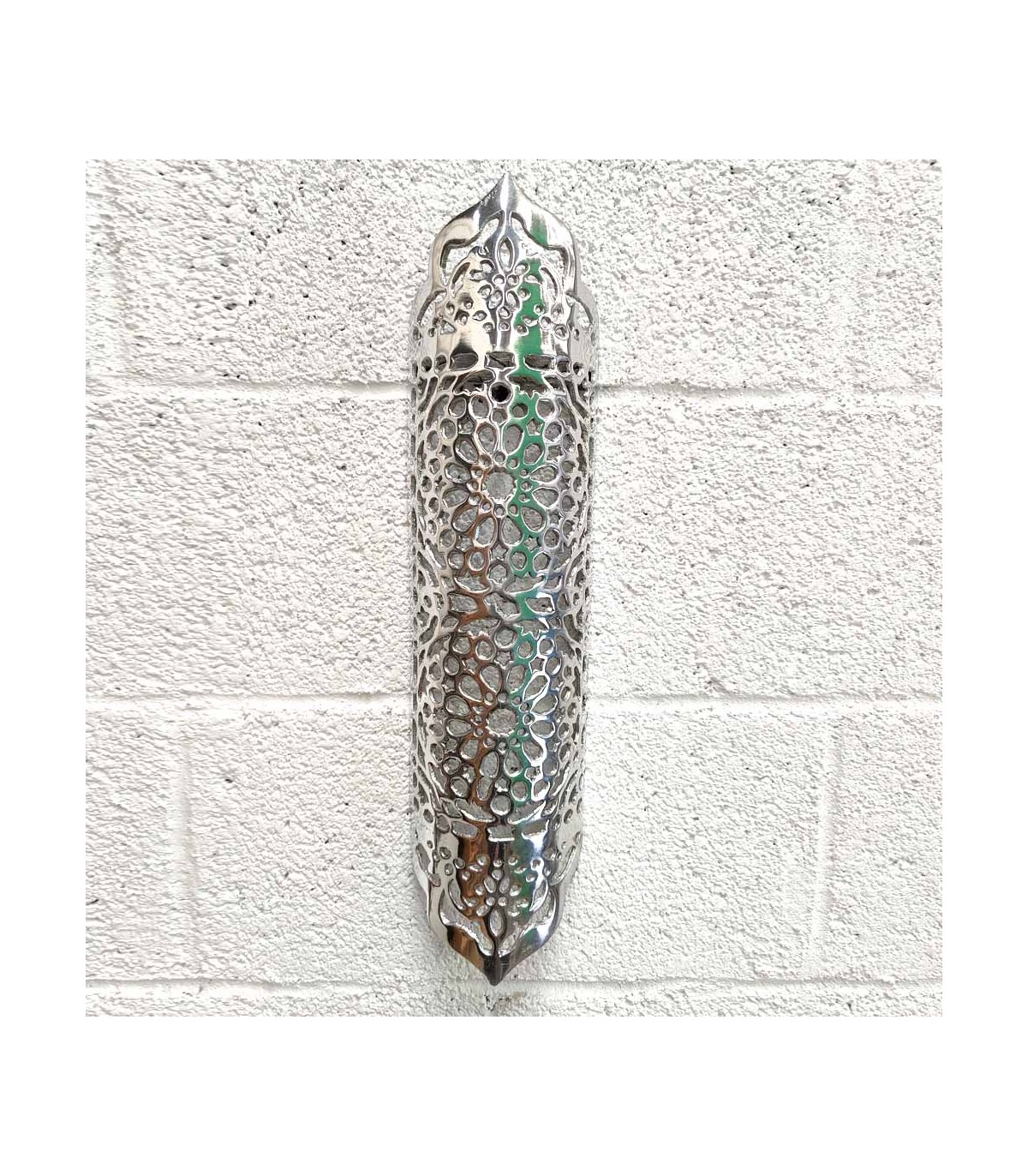 Applicare a mano realizzato in alluminio lucidato. Progettato con motivi traforati.