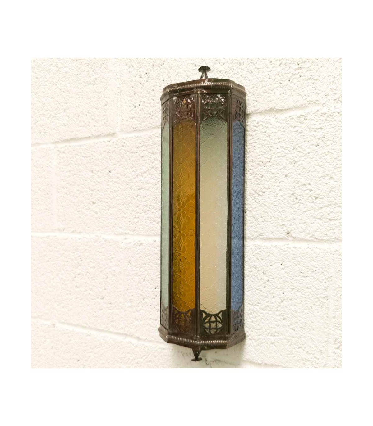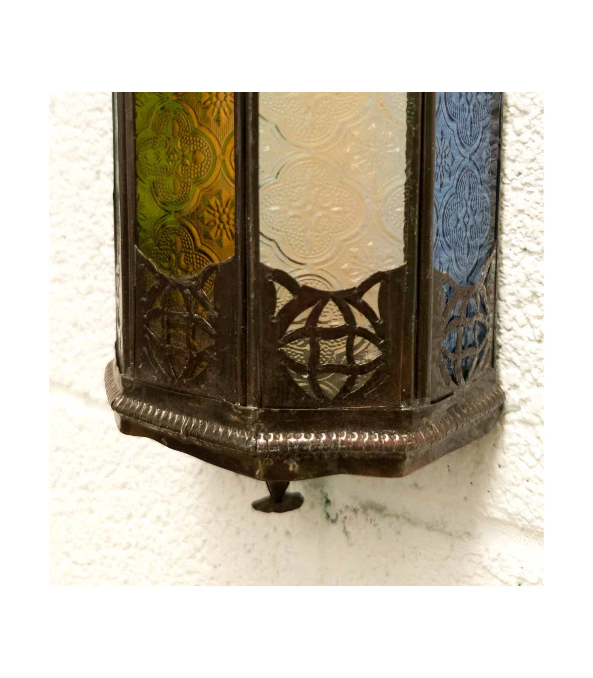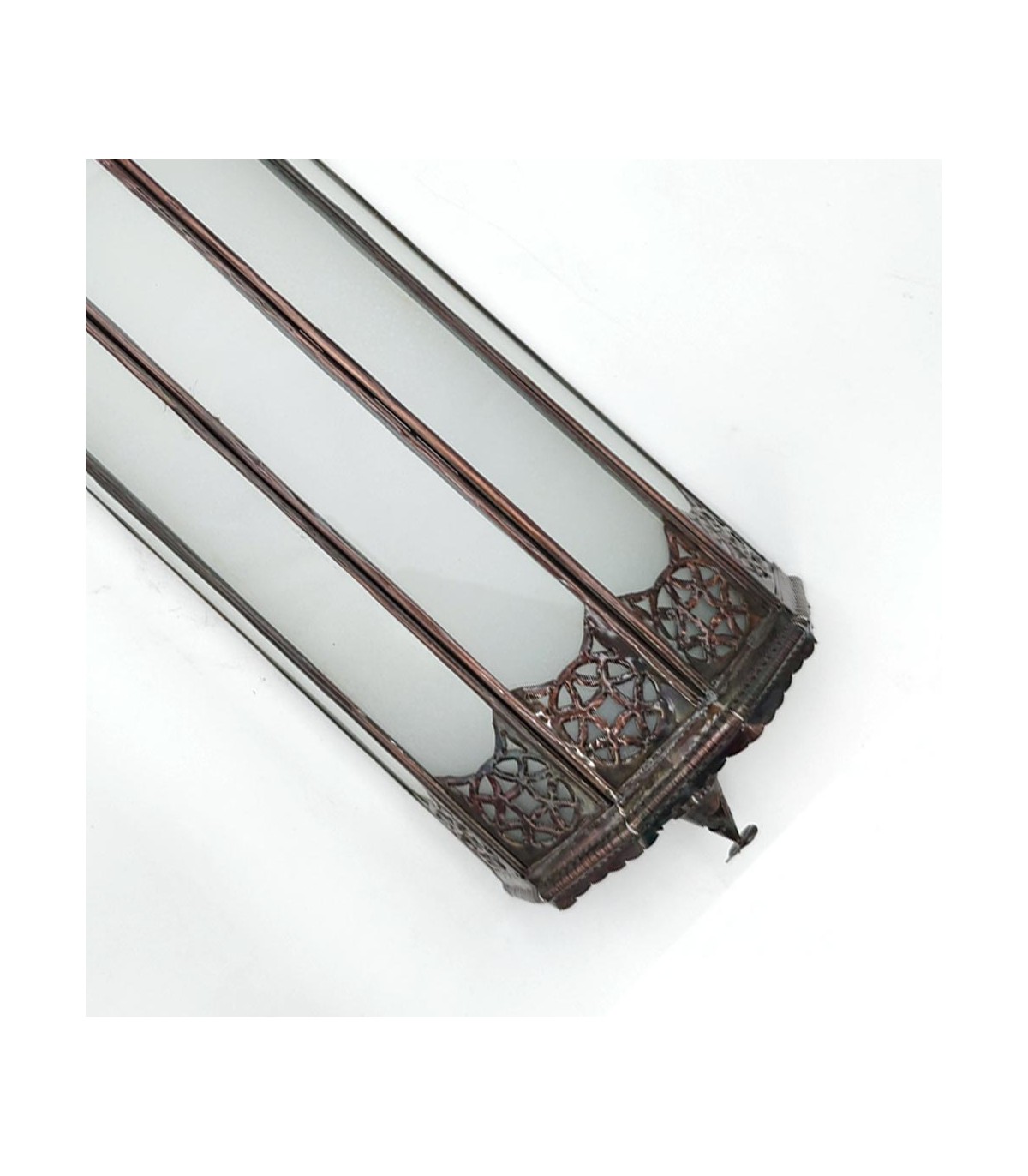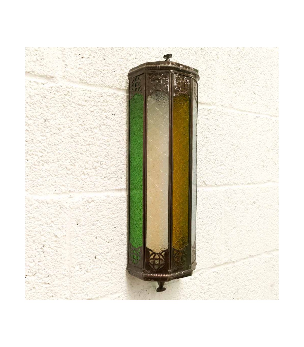 Applicare allungata disponibile in bianco opaco o multicolore (ogni un vetro di colore).Profondità con motivi Arabi.Crea un'atmosfera molto piacevole. Prodotto di grande qualità molto ben rifinito in rame antico.Grazie ai suoi problemi di progettazione
