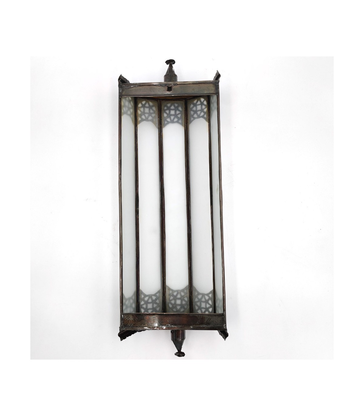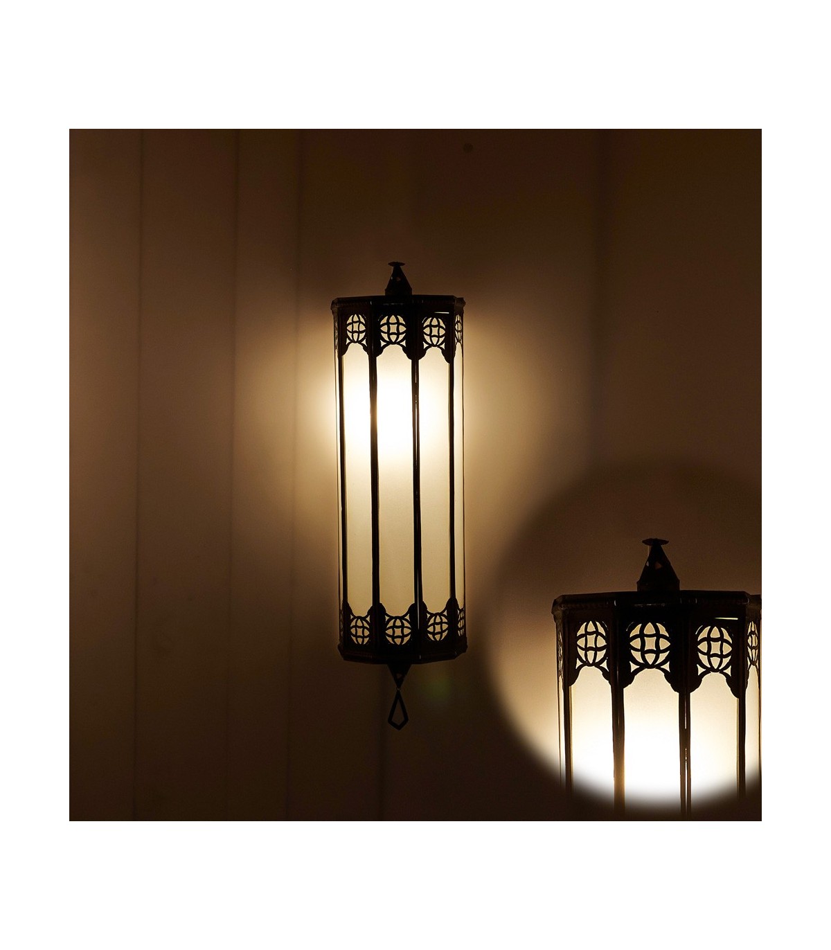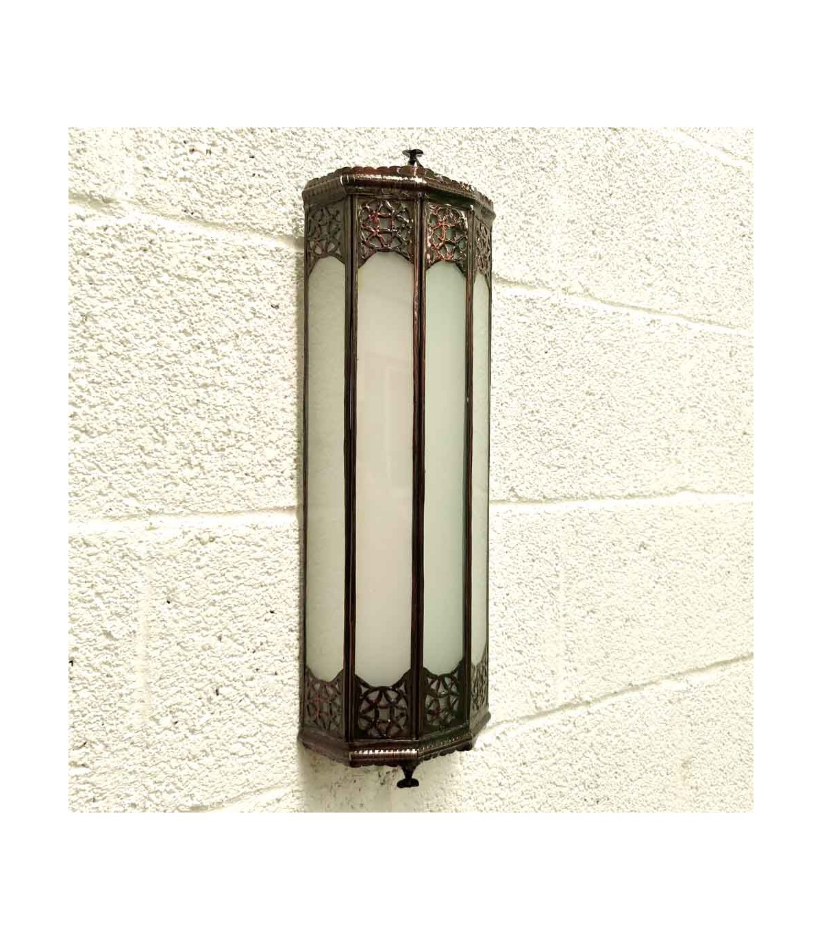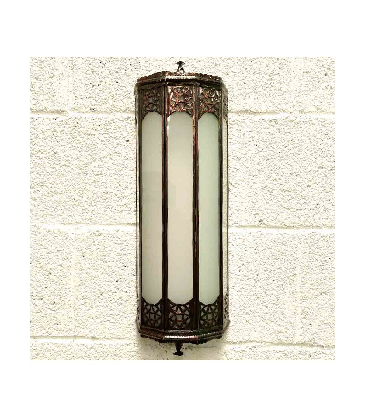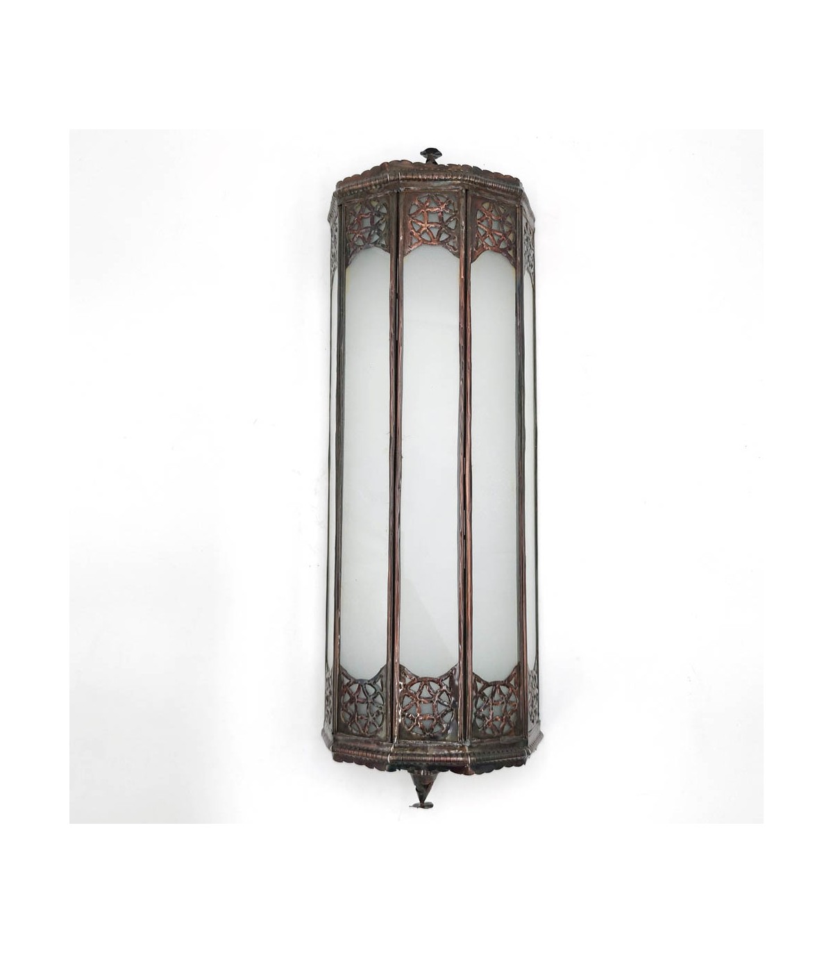 Applicare allungata disponibile in bianco opaco o multicolore (ogni un vetro di colore).Profondità con motivi Arabi.Crea un'atmosfera molto piacevole. Prodotto di grande qualità molto ben rifinito in rame antico.Grazie ai suoi problemi di progettazione