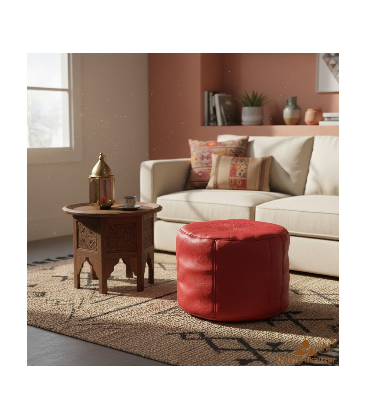 Pouf marocchino in stile arabo andaluso realizzato artigianalmente in pelle. Prodotto in Marocco, lavorato a mano, decorato con mosaico colorato e decorato con motivi dorati. Ideale per la decorazione in stile Arabian...