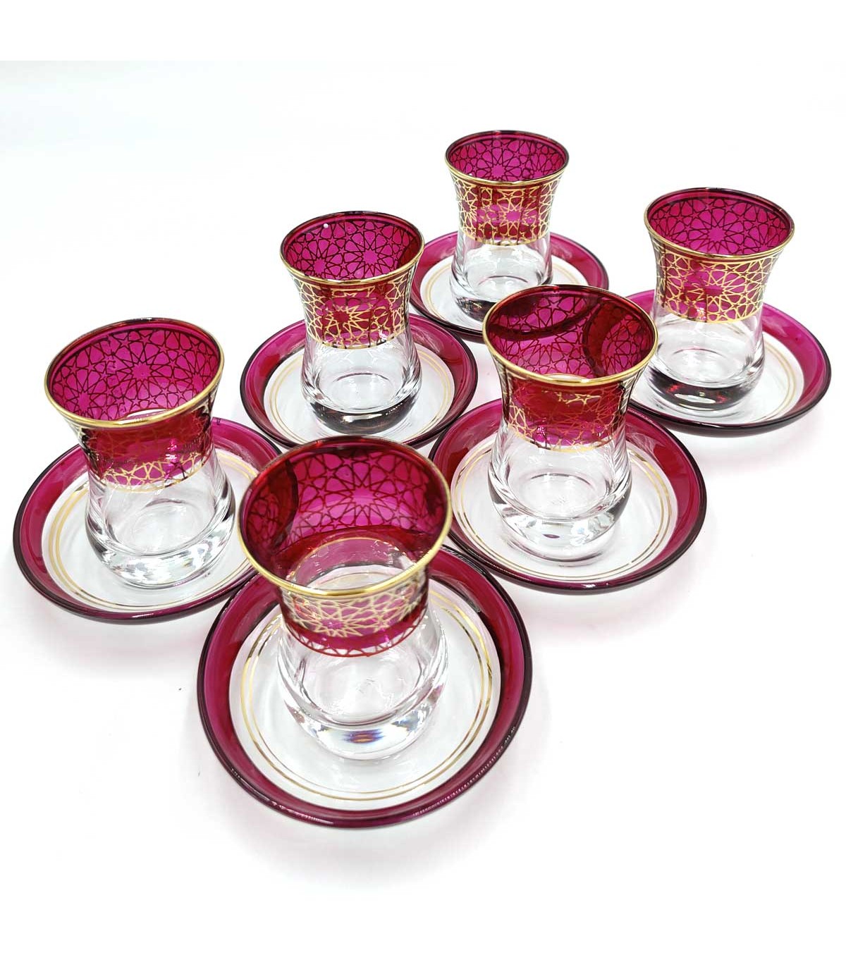 Set Gioco 6 Bicchieri da Tè Turco con Piattini - Artigianato Turco - Decorazione Araba - Modello Samaui