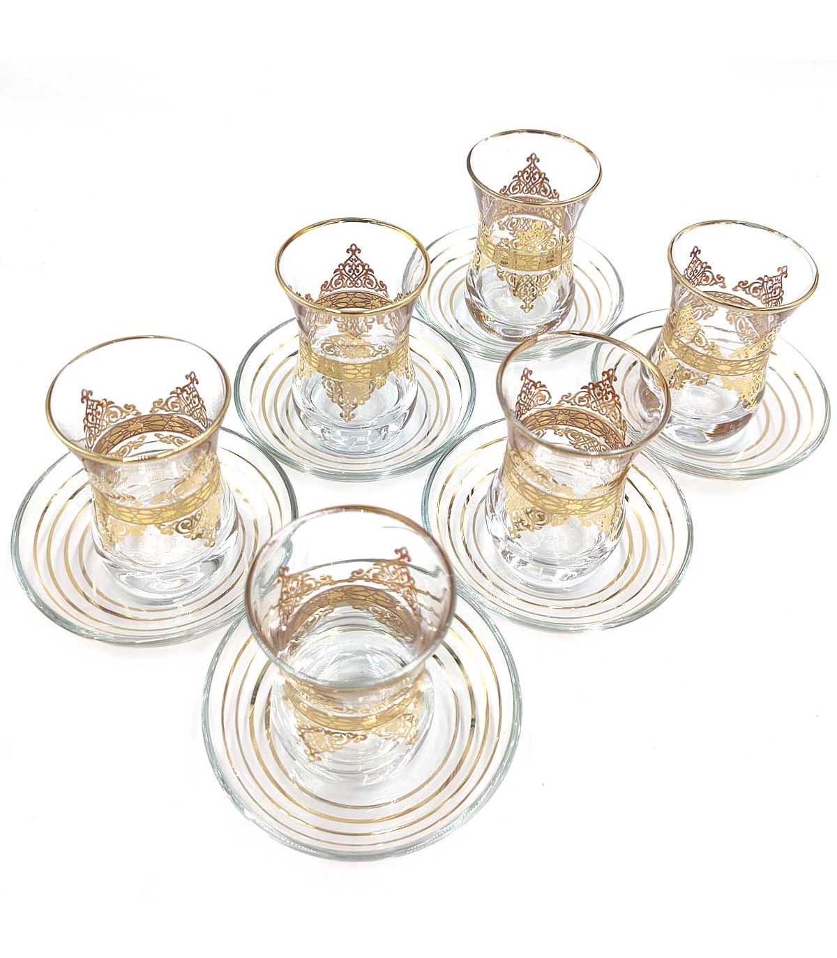 Set Gioco 6 Bicchieri da Tè Turco con Piattini - Artigianato Turco - Decorazione Araba - Modello Fiddati