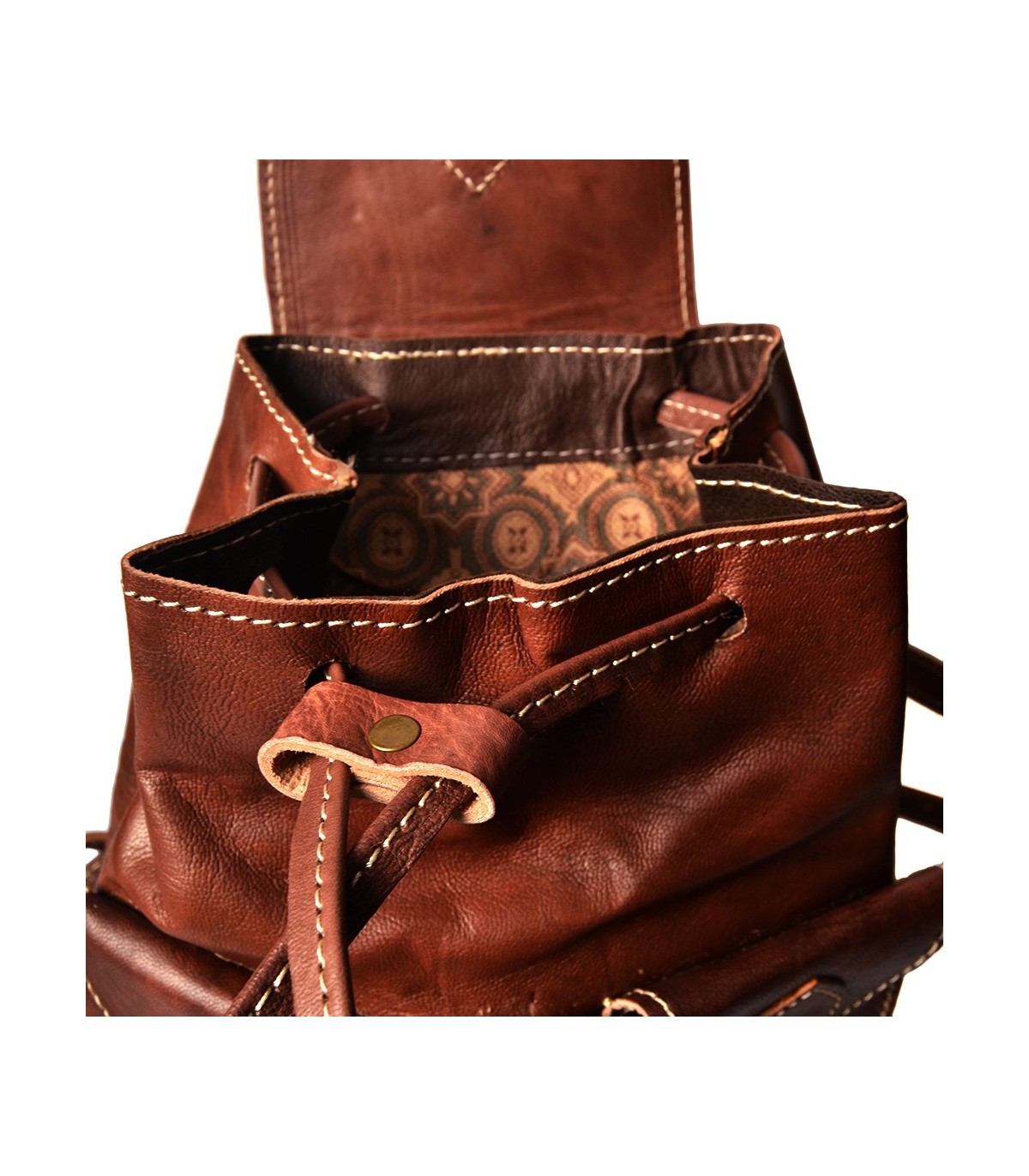 Zaino in pelle fatto a mano. Made in Morocco Fesi Style. Pelletteria di alta qualità. Ideale da usare come borsa o per escursioni. Dimensioni molto pratiche perfette per viaggi brevi. Ha 4 tasche e la grande tasca...