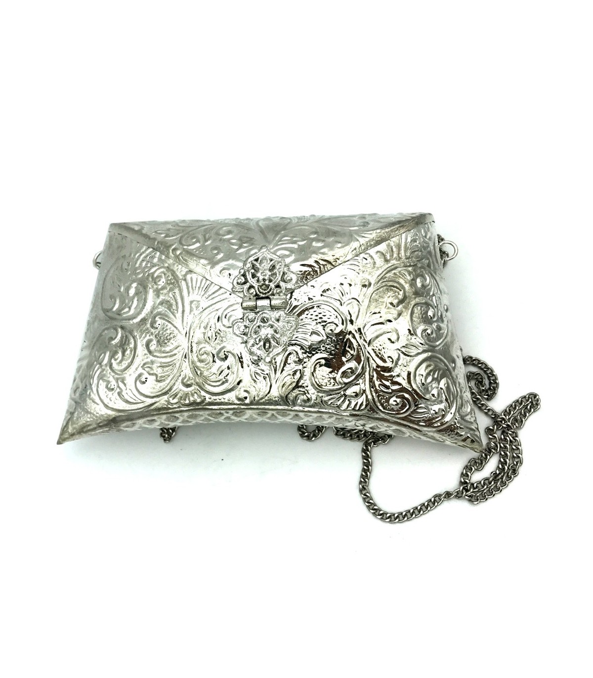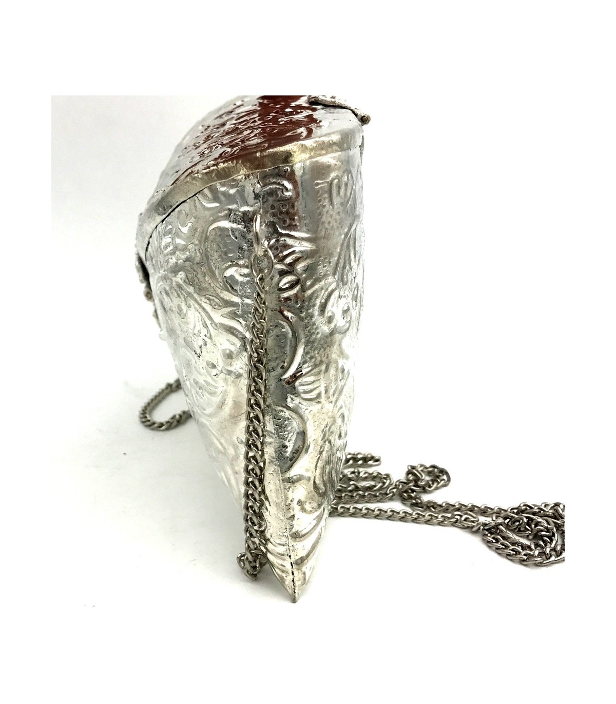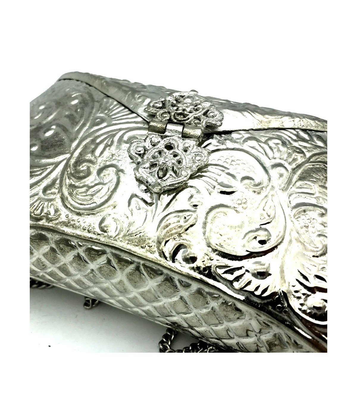Borsa in pelle fatta a mano con chiusura a strappo. Pelle goffrata decorata con motivi moreschi.