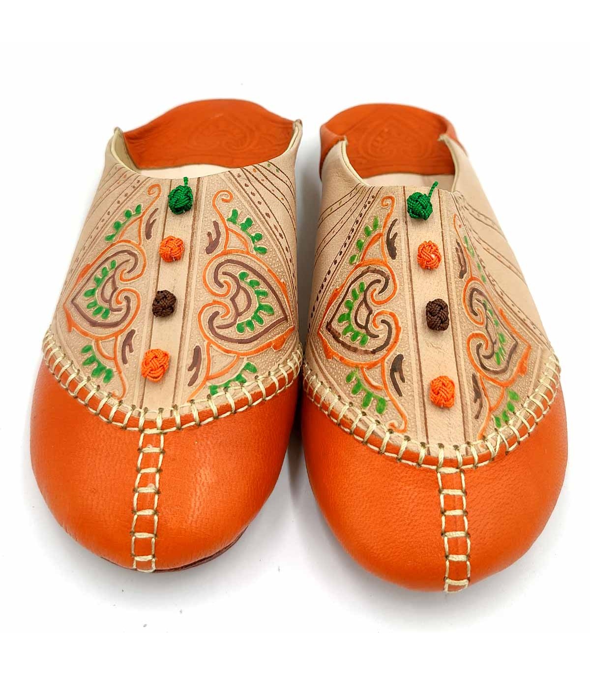Pantofole Marocchine da Donna - Colore Arancione - Artigianato Marocchino in Pelle Autentica - Modello Azrar