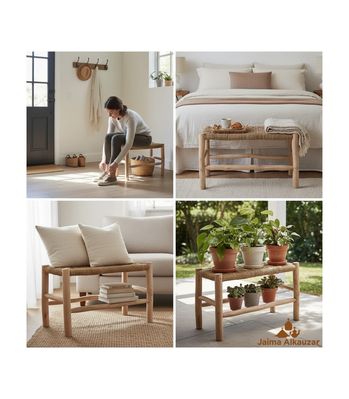 Aggiungi un tocco rustico e autentico alla tua casa con la nostra Banca Artigianale, fatta a mano in Marocco con legno di limone e sparto. Questo pezzo unico combina tradizione e design moderno.