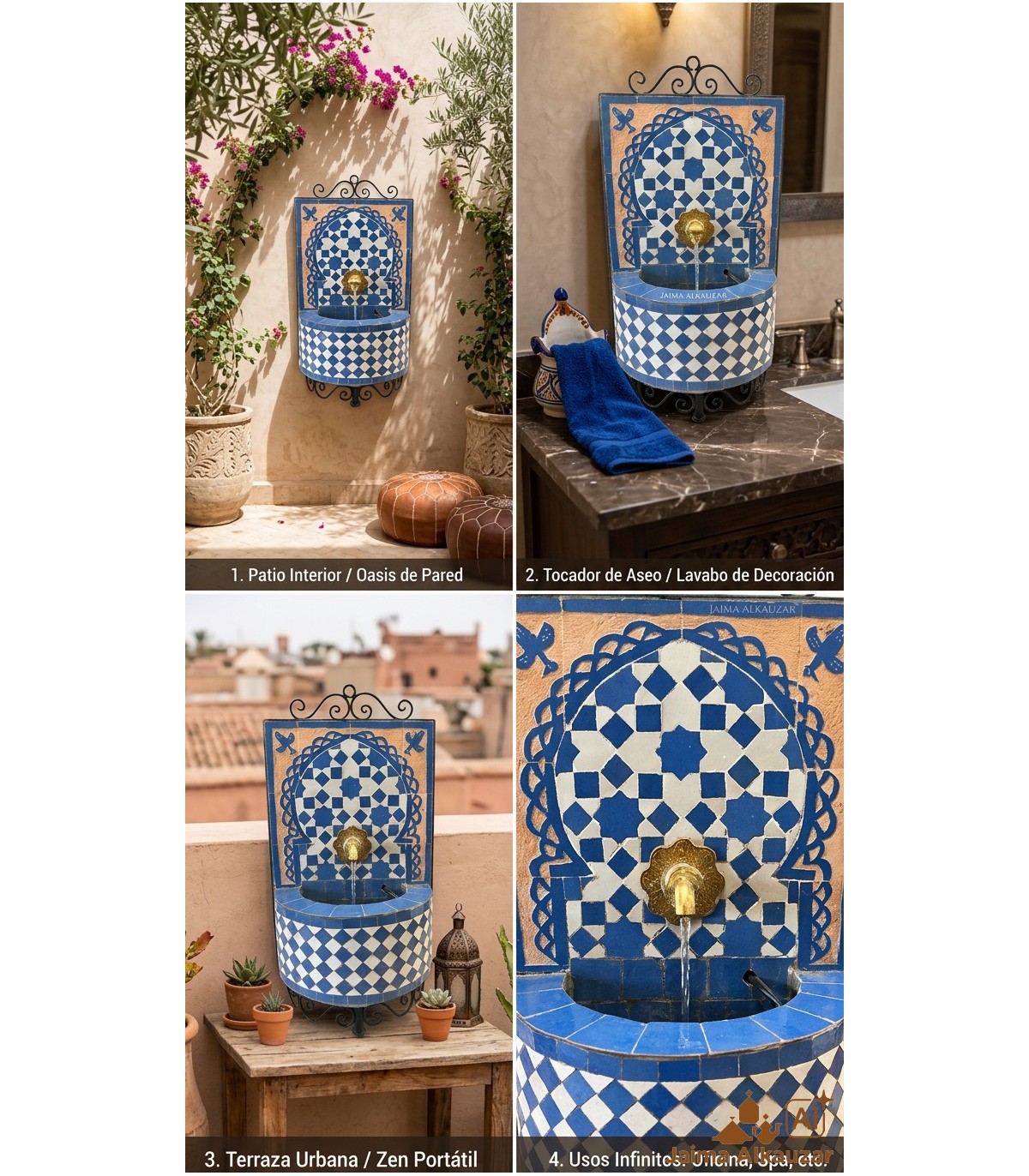 Se stai cercando qualità, autenticità e bellezza nei tuoi progetti di decorazione, la nostra fontana di mosaico Zellige è la scelta perfetta. Aggiungi un tocco marocchino alla tua casa con questo pezzo artigianale che combina tradizione e modernità.