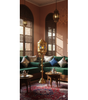 Lampada da comodino. Lampada artigianale araba traforata realizzata con tecniche ereditate dai migliori maestri artigiani della Medina di Fez, in Marocco.