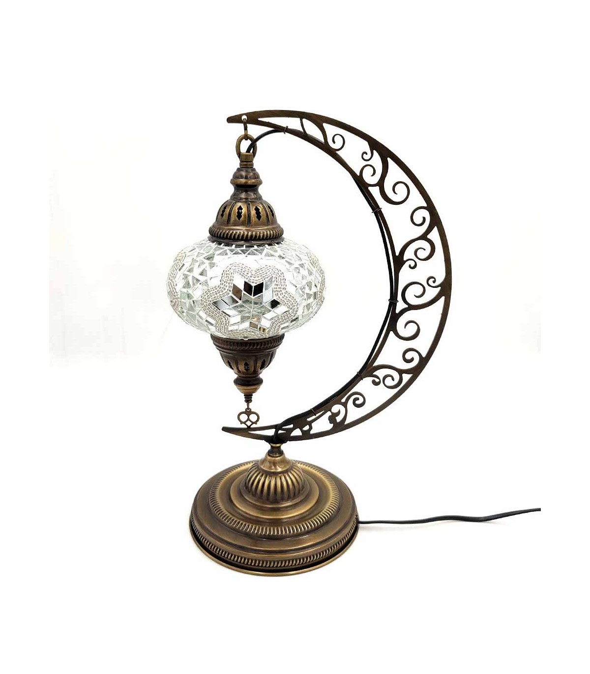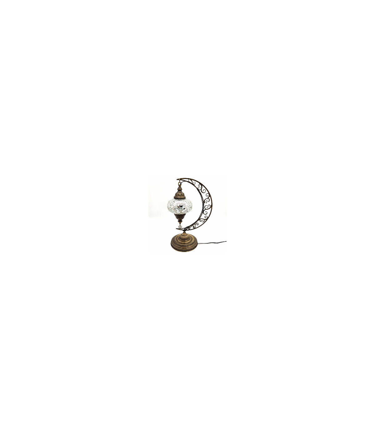 Lampada da tavolo turca ideale per il tuo comodino o per la tua credenza in soggiorno. Lampada in vetro con mosaico decorato, lampada modello New moon o Hilal in arabo. Base molto stabile per una lampada da terra o da tavolo di alta qualità che puoi acquistare online sul nostro sito web.