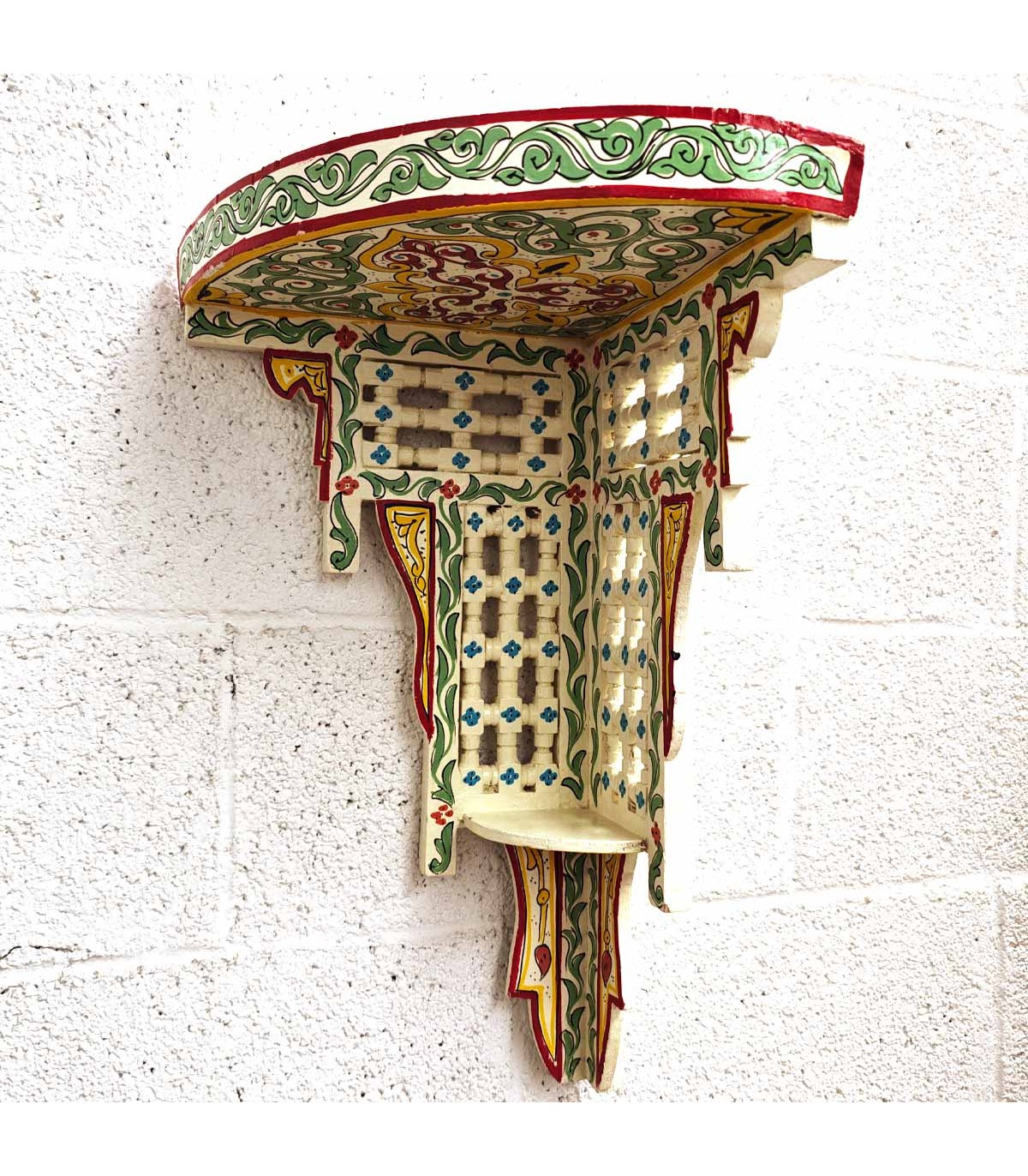 Specchio arabo con cornice in alpacca goffrata con motivi geometrici arabi color argento. Arco all'interno del telaio.Misure: 120 cm x 80 cm.