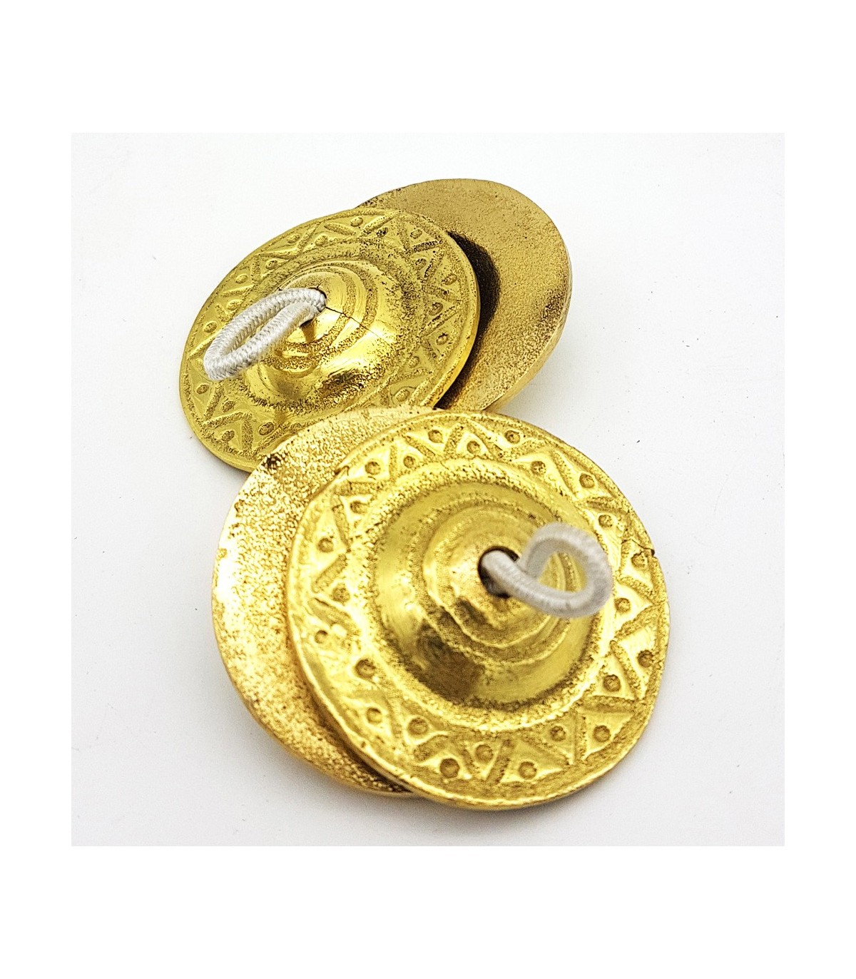 Crotalos musicali, piatti di dita, piatti di dita, chimchine, timbri di dita, zoccoli o zaggati, sono piccoli strumenti a percussione tipici del bronzo, che sono annodati per mezzo di elastici, al pulce e al dito del cuore, con i quali i ballerini di danza del ventre o simili per notare i loro movimenti. forte>