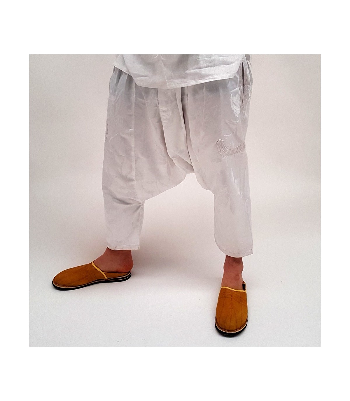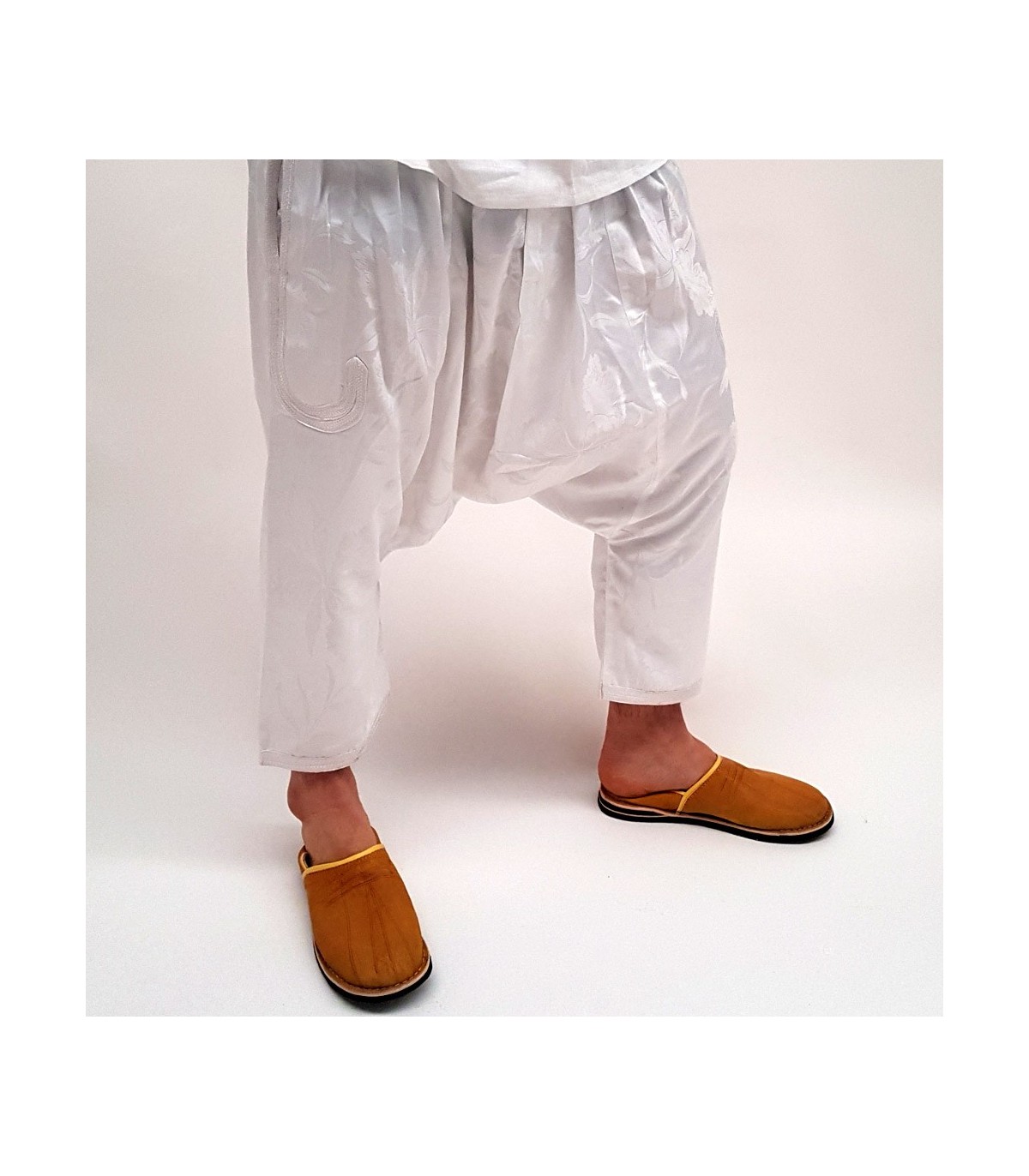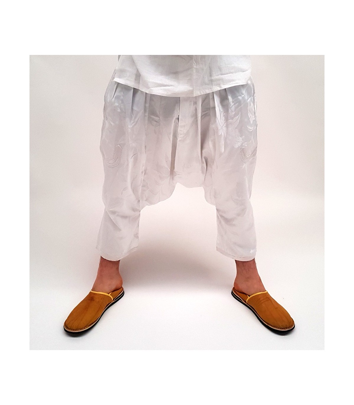 Pantaloni Bombacho per uomo, fatti a mano. Tessuto in seta decorato con motivi floreali. Tessuto luminoso, con tasca decorata con ricami. forte>