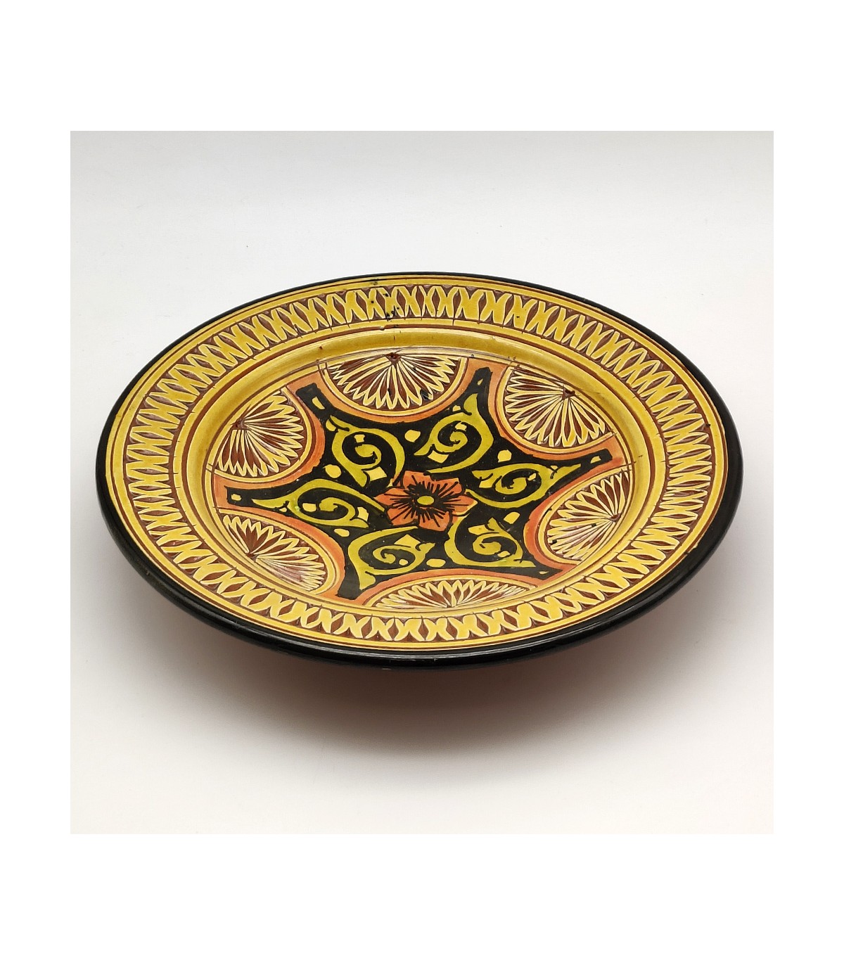 Piatto per decorazione araba ceramica smaltata e intagliata realizzata a mano per acquistare online al miglior prezzo. Ceramica intagliata e dipinta a mano proveniente da Safi, Marocco. Una città nota per i suoi vasai e le sue ceramiche uniche al mondo.