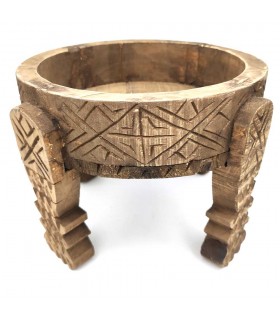 Tavolo smerigliatrice Chakki basso in legno intagliato - Chill Out - artigianato marocchino modello Khashab Beldi. Finitura in legno invecchiato.Disponibile in 4 taglie