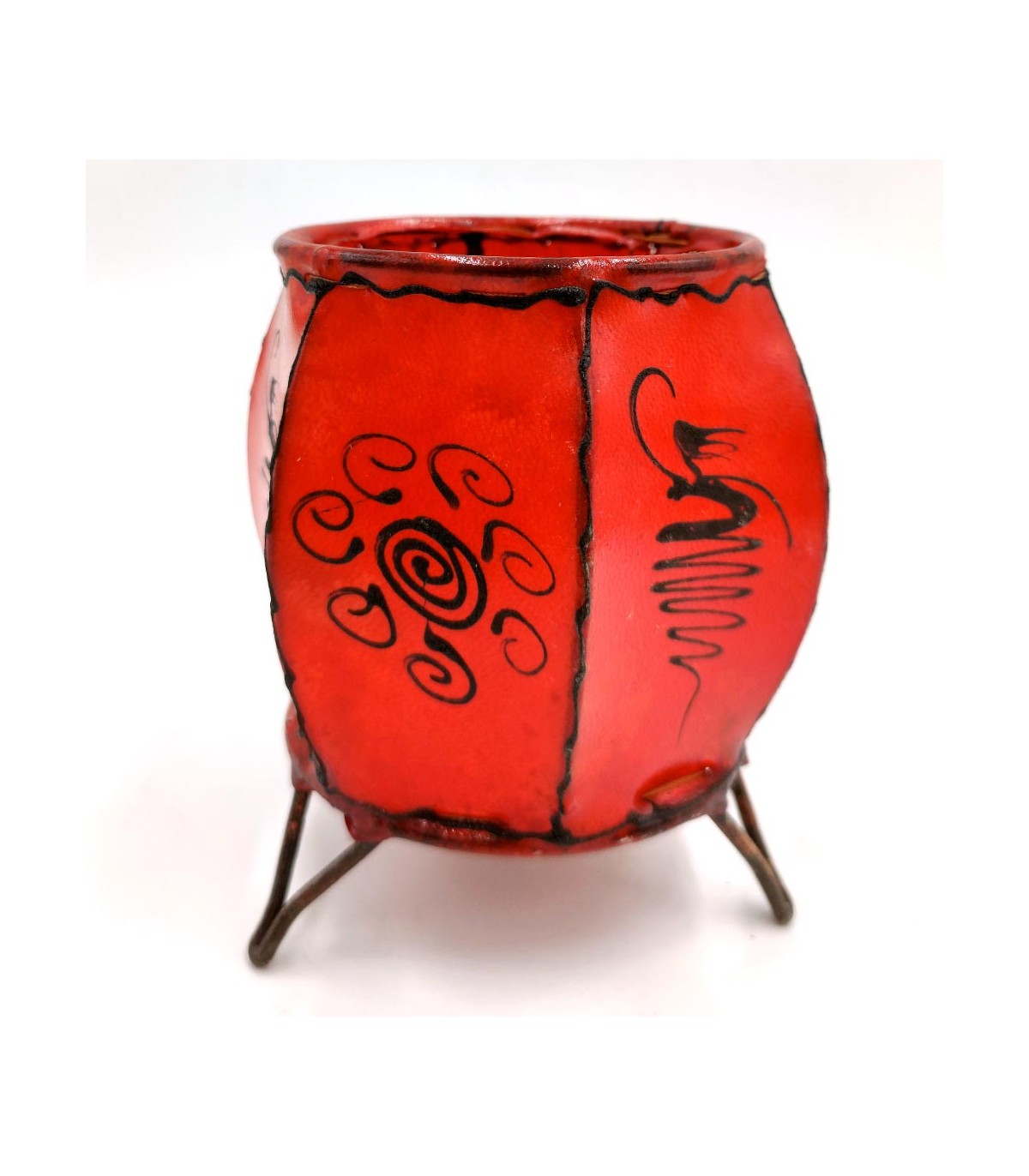 Portacandele in pelle dipinta con henné - Decorazione andalusa di artigianato marocchino, modello Dauratun