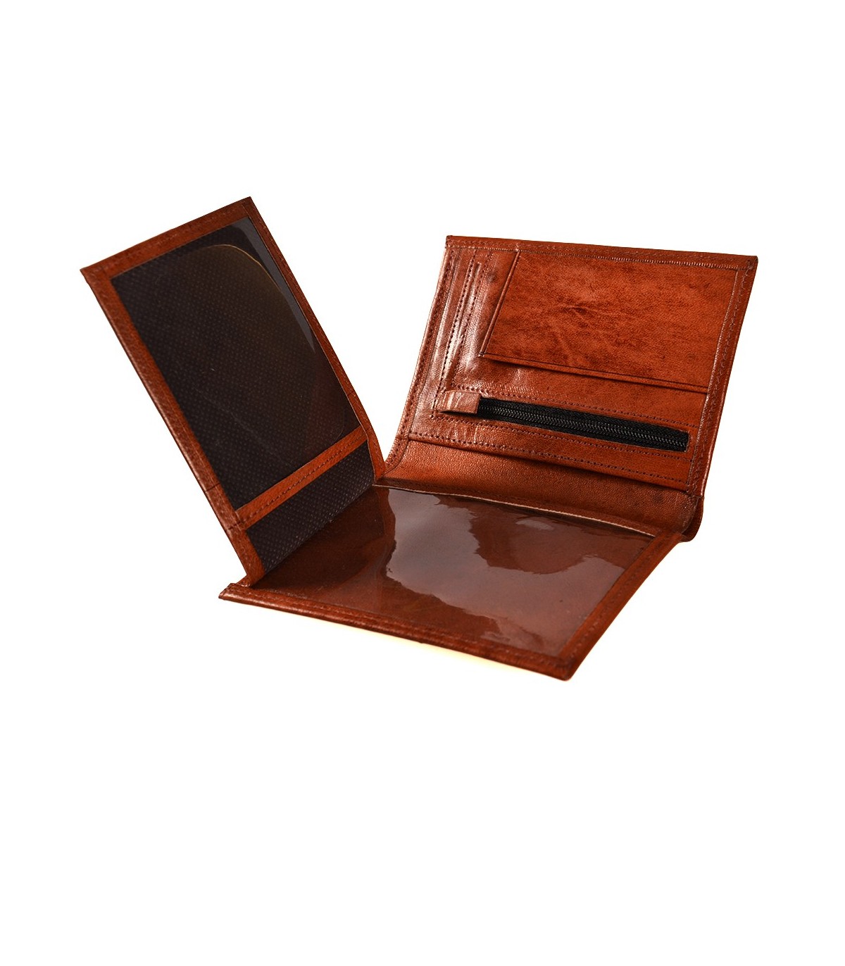 Ha un compartimento per banconote, monete, carte e persino 2 tasche di plastica per carta d'identità o patente di guida.