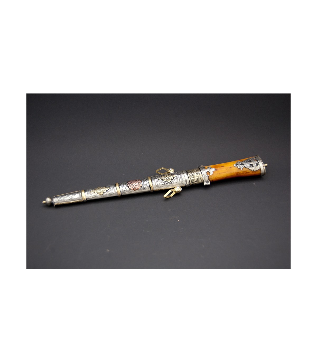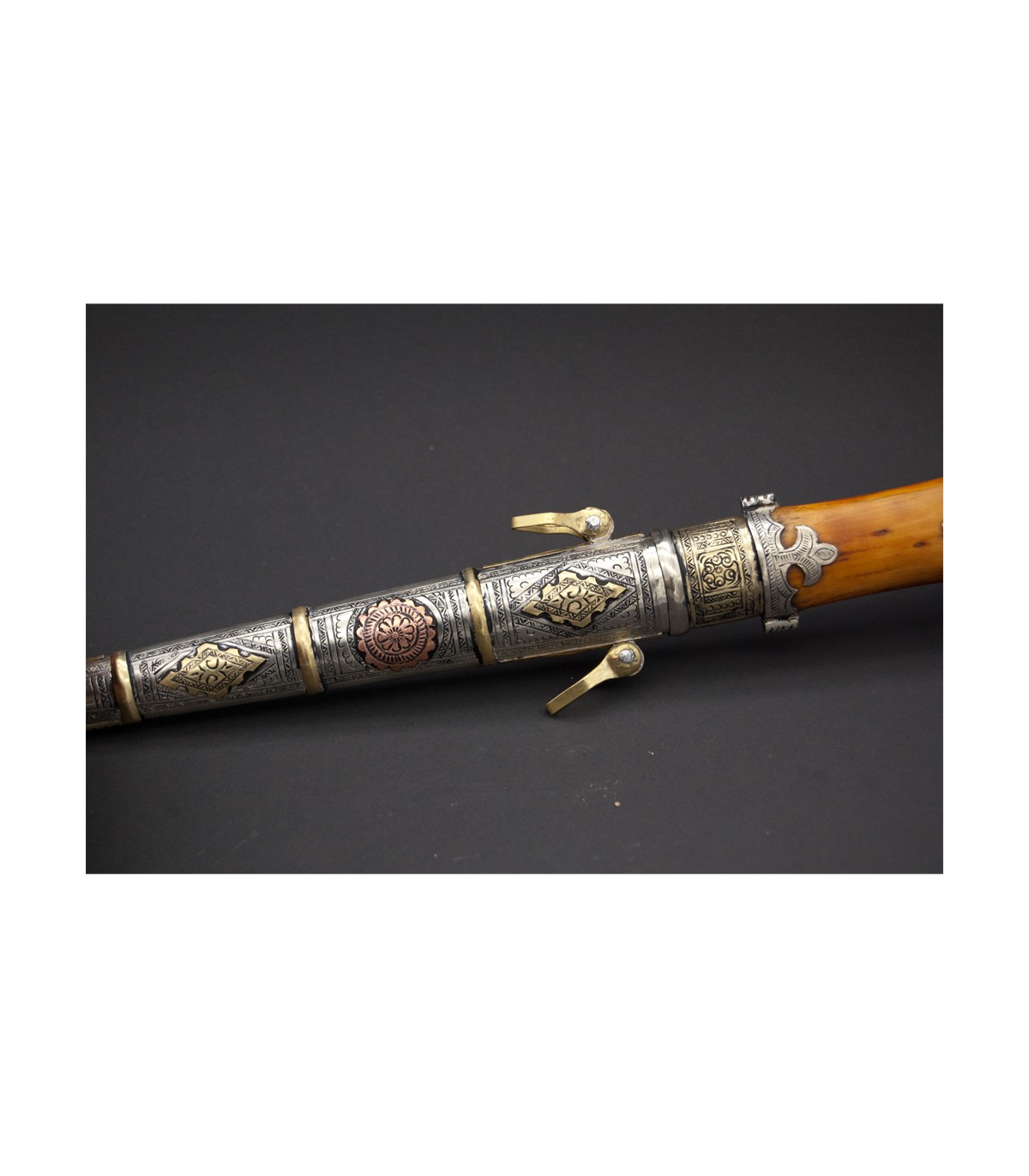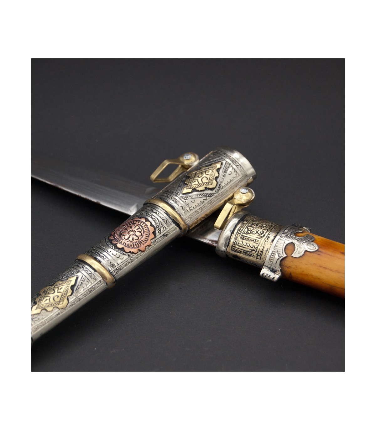 Pugnale marocchino realizzato interamente a mano. Tradizione ancestrale ereditata da maestri artigiani. Pochissime tribù di artigiani eseguono già questo tipo di lavoro artigianale tradizionale.