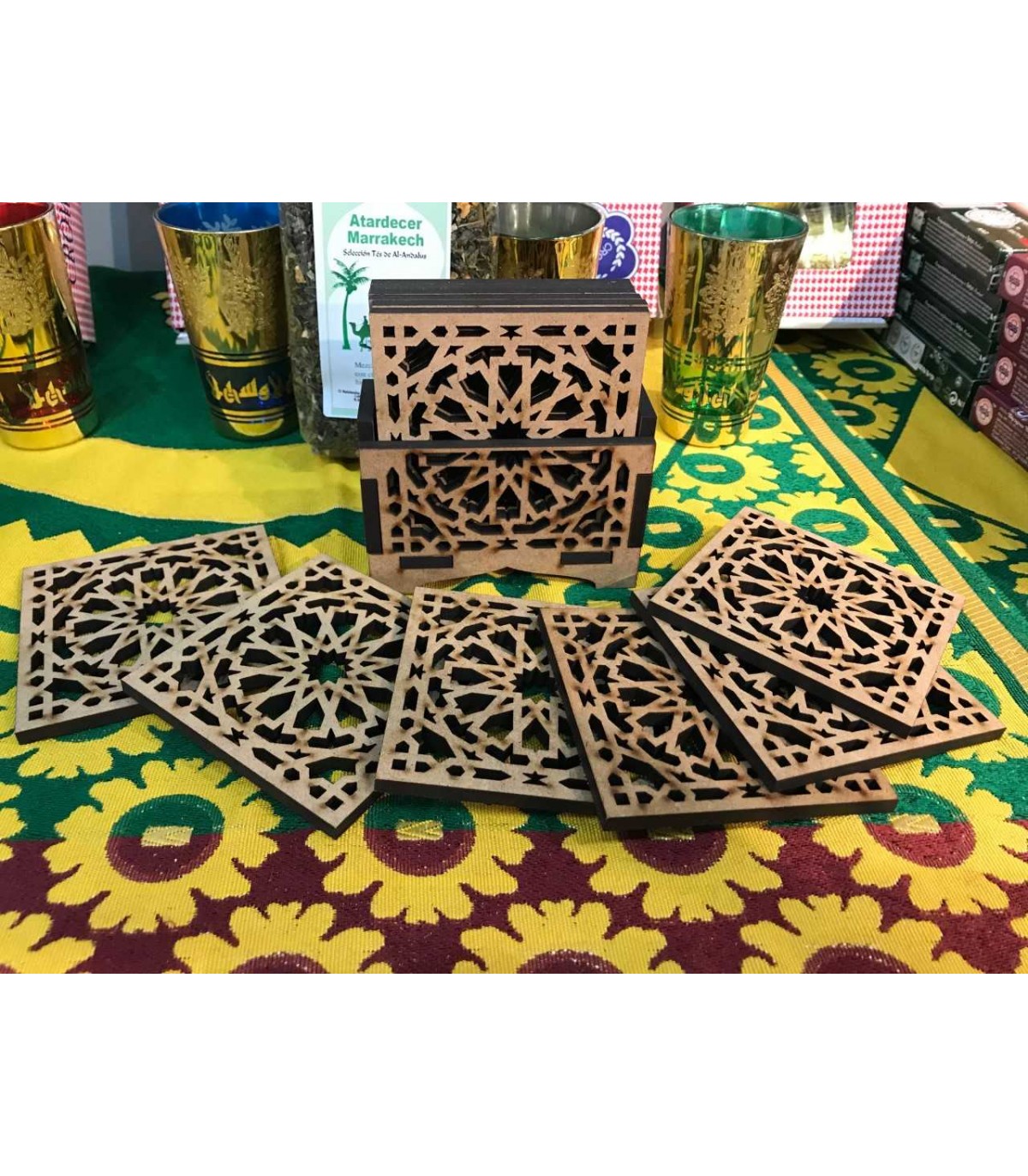 Set 6 sottobicchieri a grata araba - Legno - Modello Alhambra
