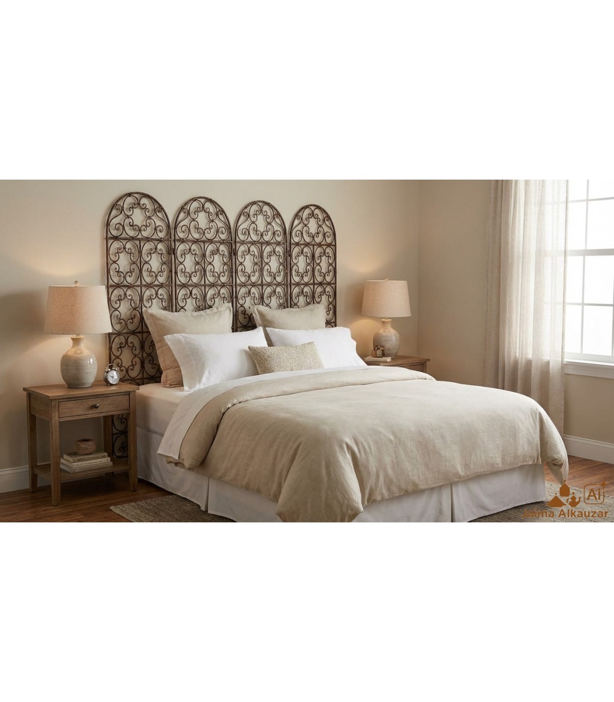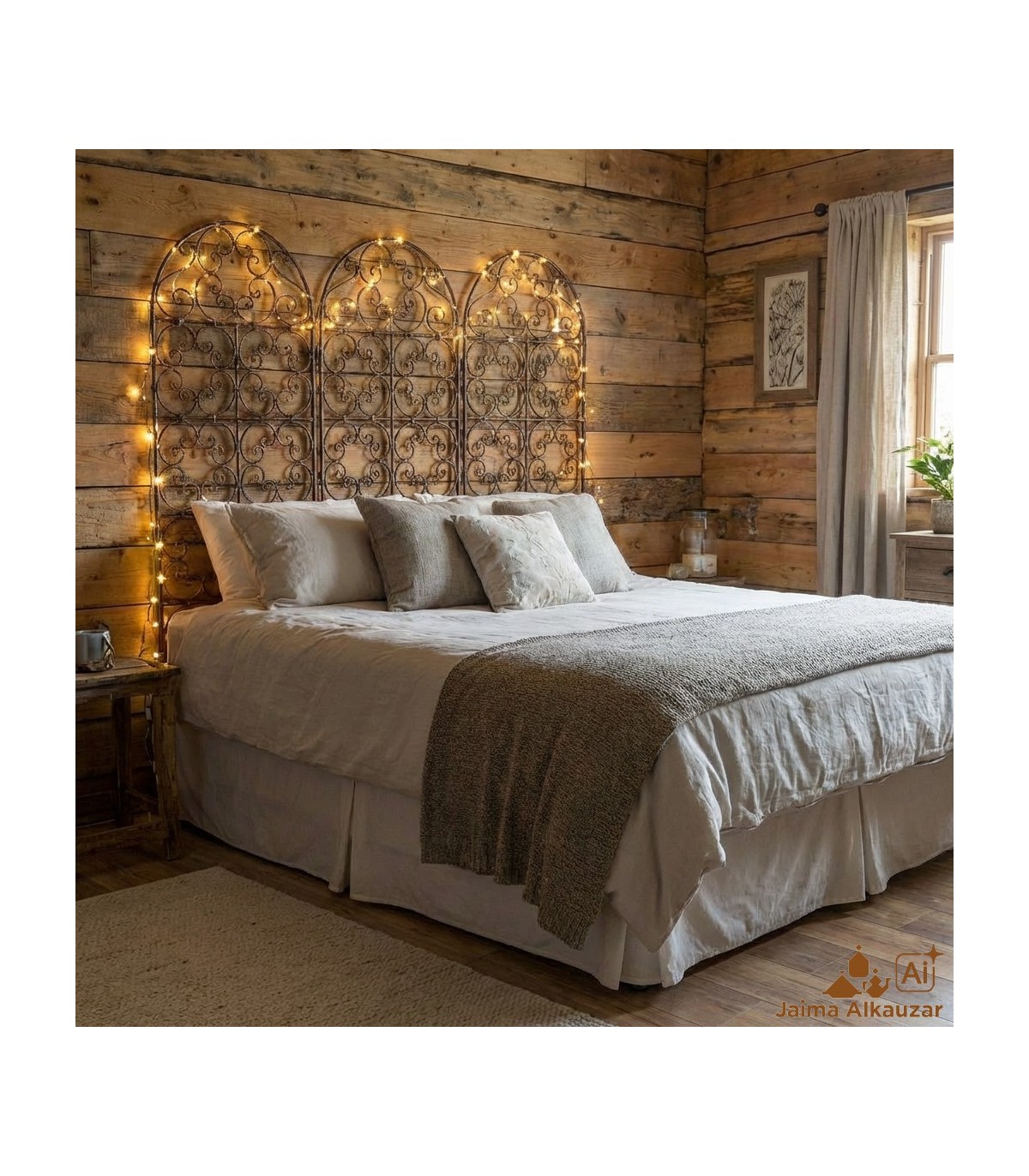 Griglia di legno modello Asjar realizzata in legno laminato di 3 cm di spessore.Può essere utilizzato come testiera del letto o quadro da parete. Griglia di legno floreale ideale per la decorazione della casa.