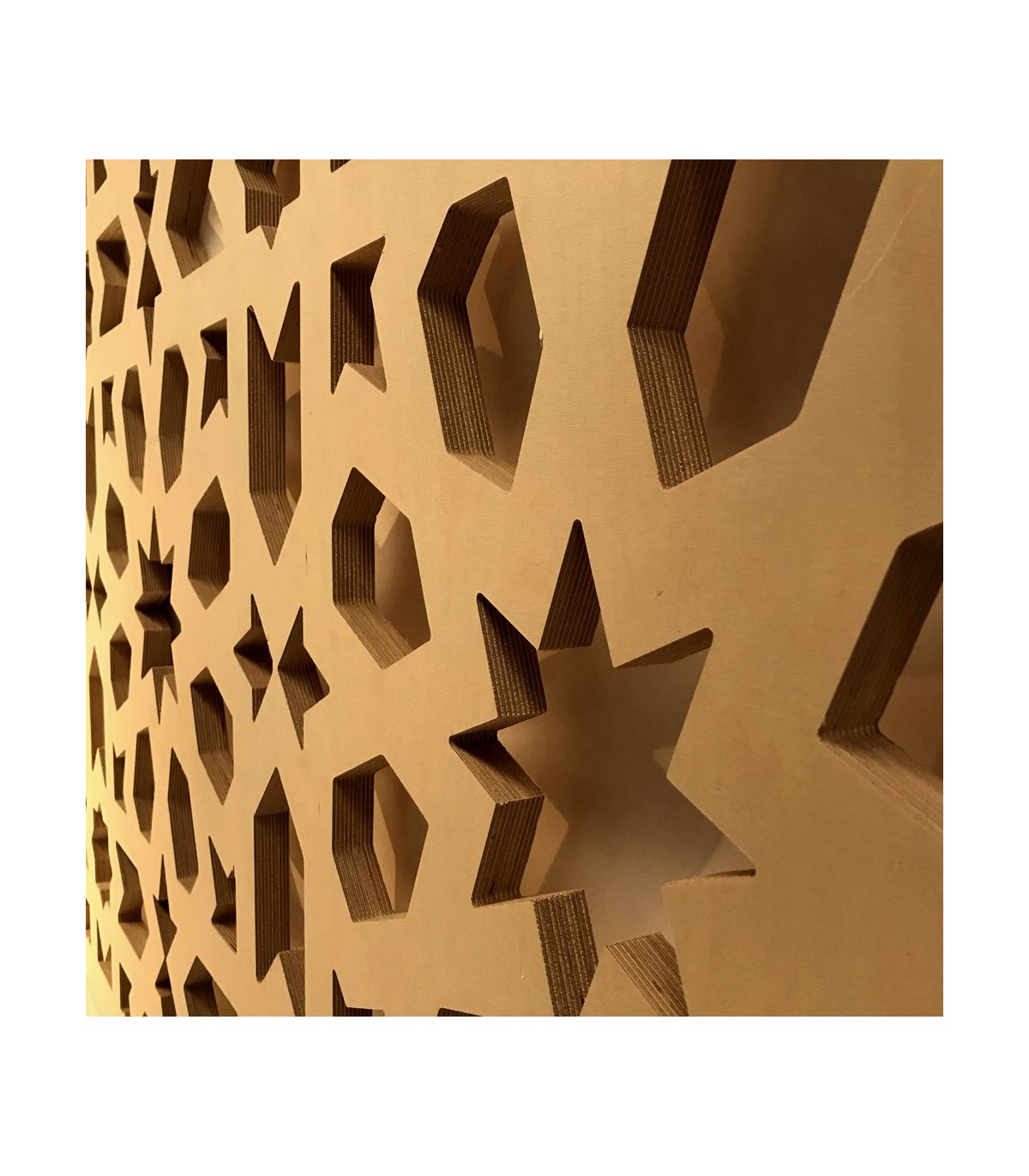 Può essere usato come un muro per la separazione degli spazi ma senza travolgere grazie al suo design di mosaico arabo, creando uno spazio aspro e intimo.