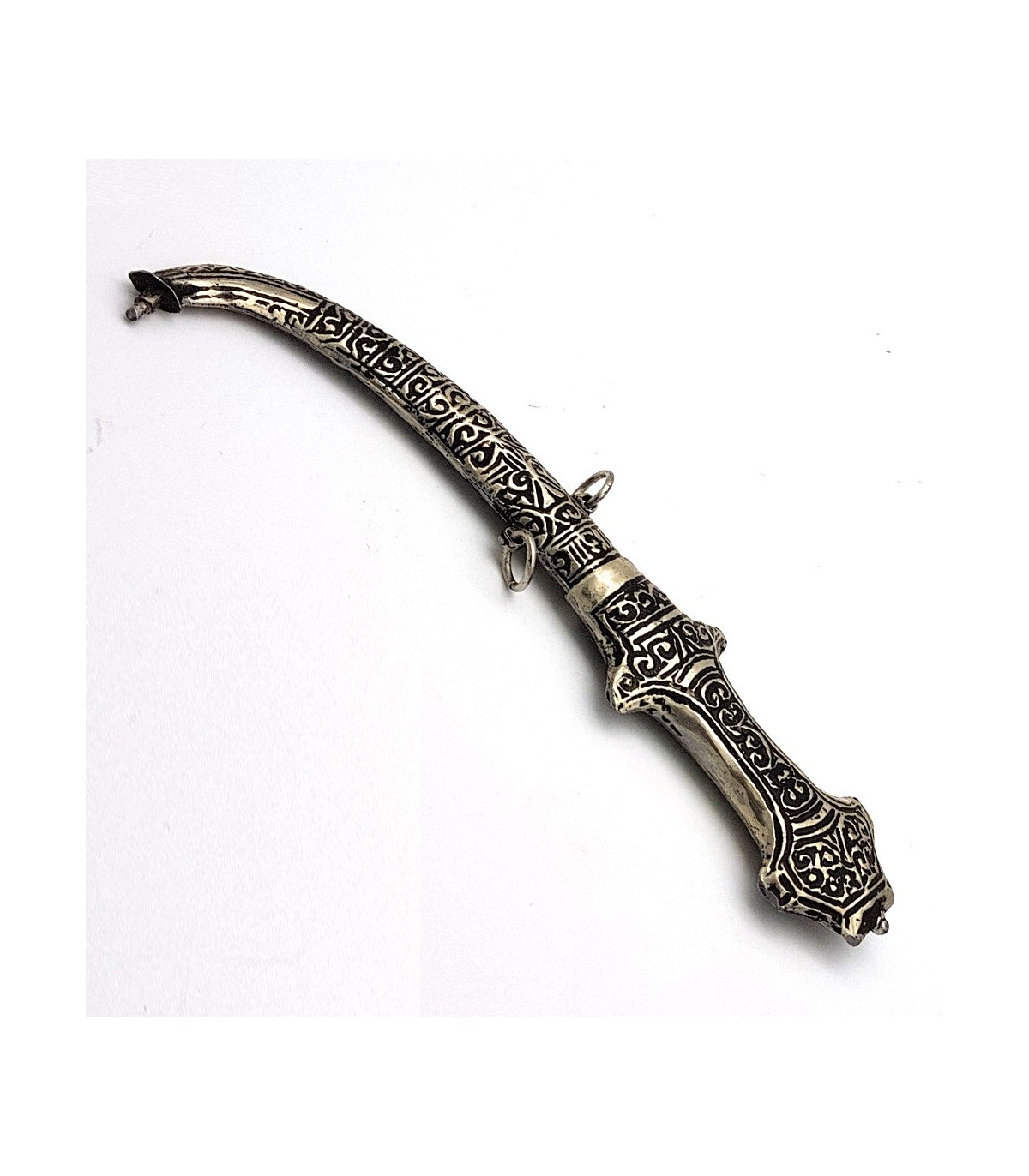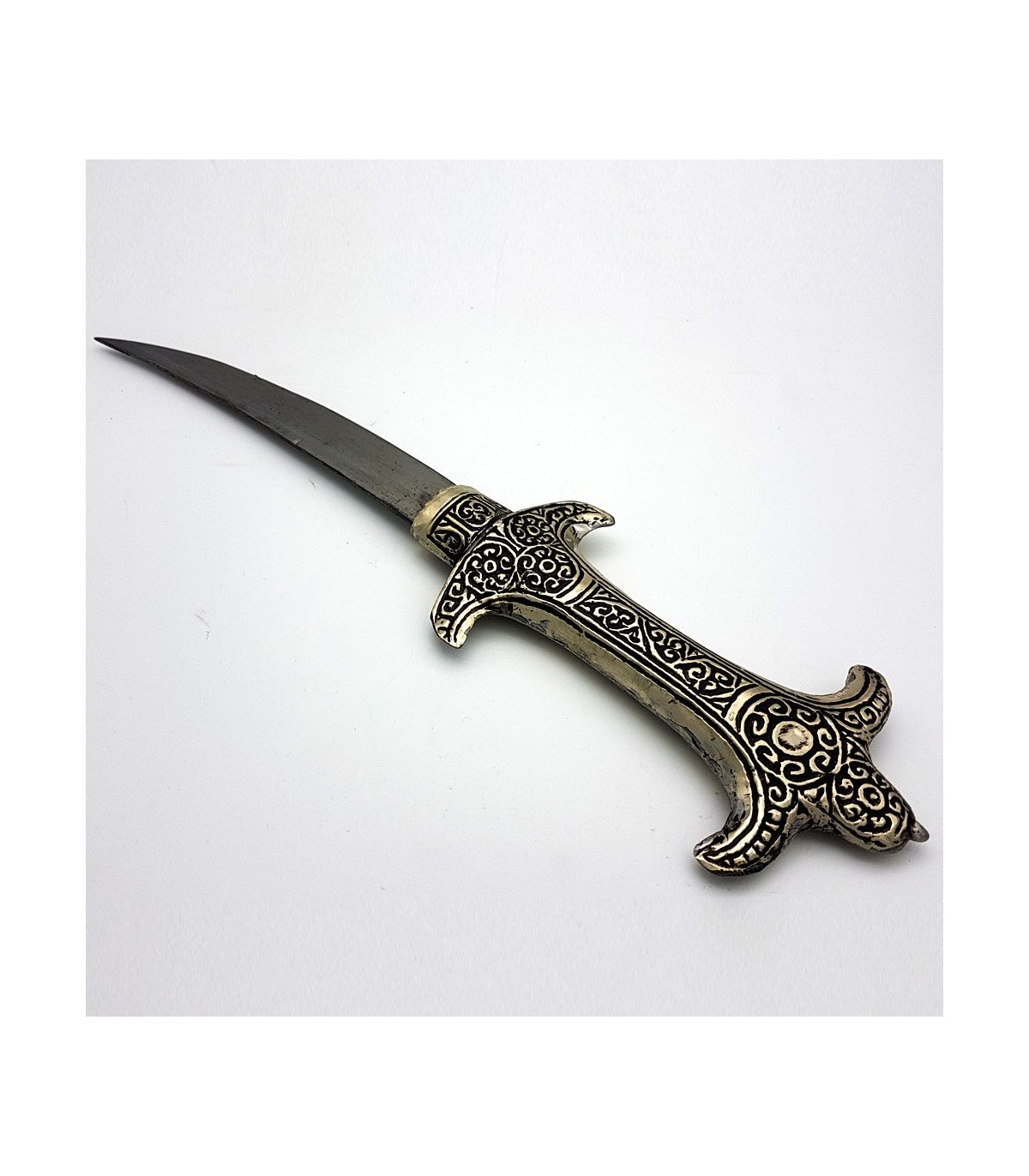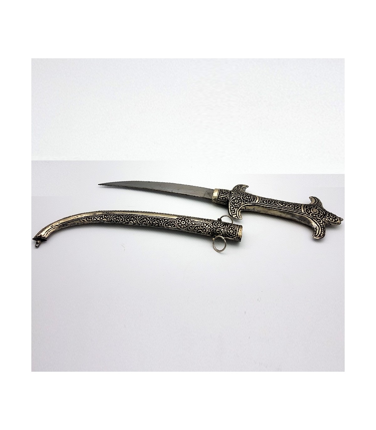 Pugnale arabo o pugnale fatto a mano, da artigiani marocchini di tradizione ereditata, baina ed elsa decorati a mano con alpaca incisa a mano.