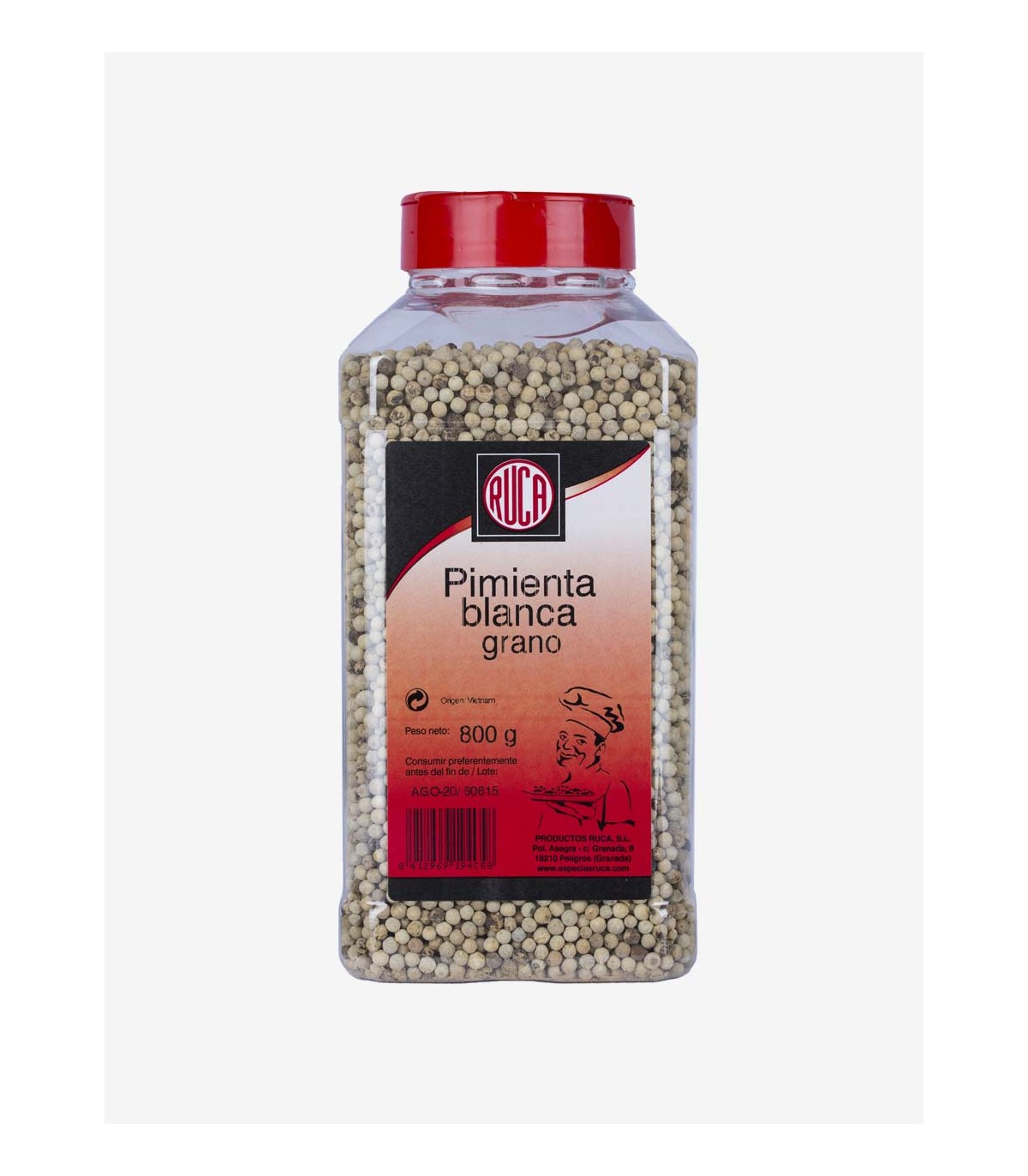 È il frutto maturo, essiccato e privato della parte esterna del pericarpo del Piper nigrum; acino di circa 3 mm, con superficie liscia e di colore bianco (una volta sbucciato). Alla spaccatura sprigiona un profumo intenso e speziato. Sebbene ci siano origini diverse, attualmente commercializziamo solo quello dal Vietnam.