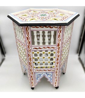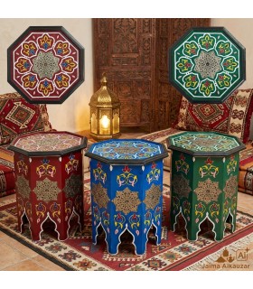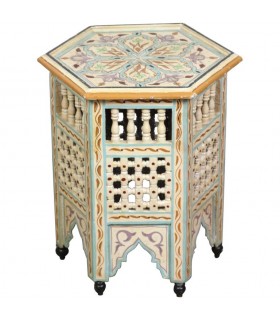 Immergiti nella bellezza dell'artigianato marocchino con il nostro tavolo basso Chakki con macinacaffè in legno intagliato, un vero tesoro ispirato alla tradizione della macinazione del grano e arricchito con il...