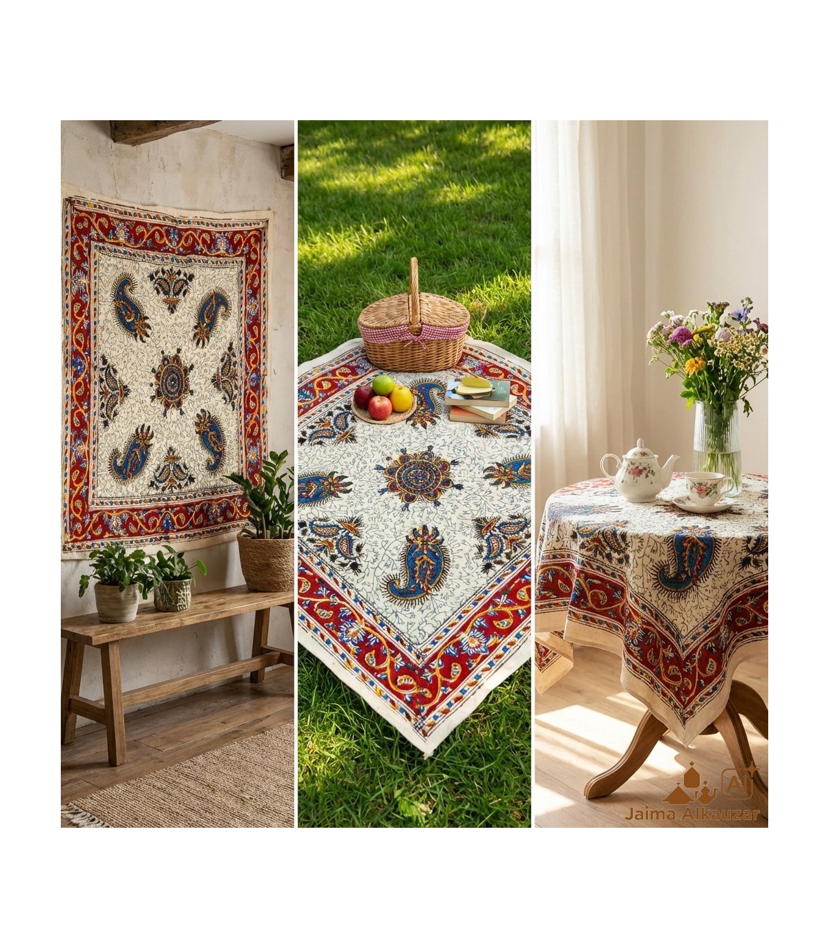 Tappeto in cotone 100% artigianale, prodotto in Medio Oriente con coloranti vegetali naturali. Formato quadrato disponibile in varie dimensioni, è perfetto per aggiungere un tocco autentico e sostenibile alla tua casa.