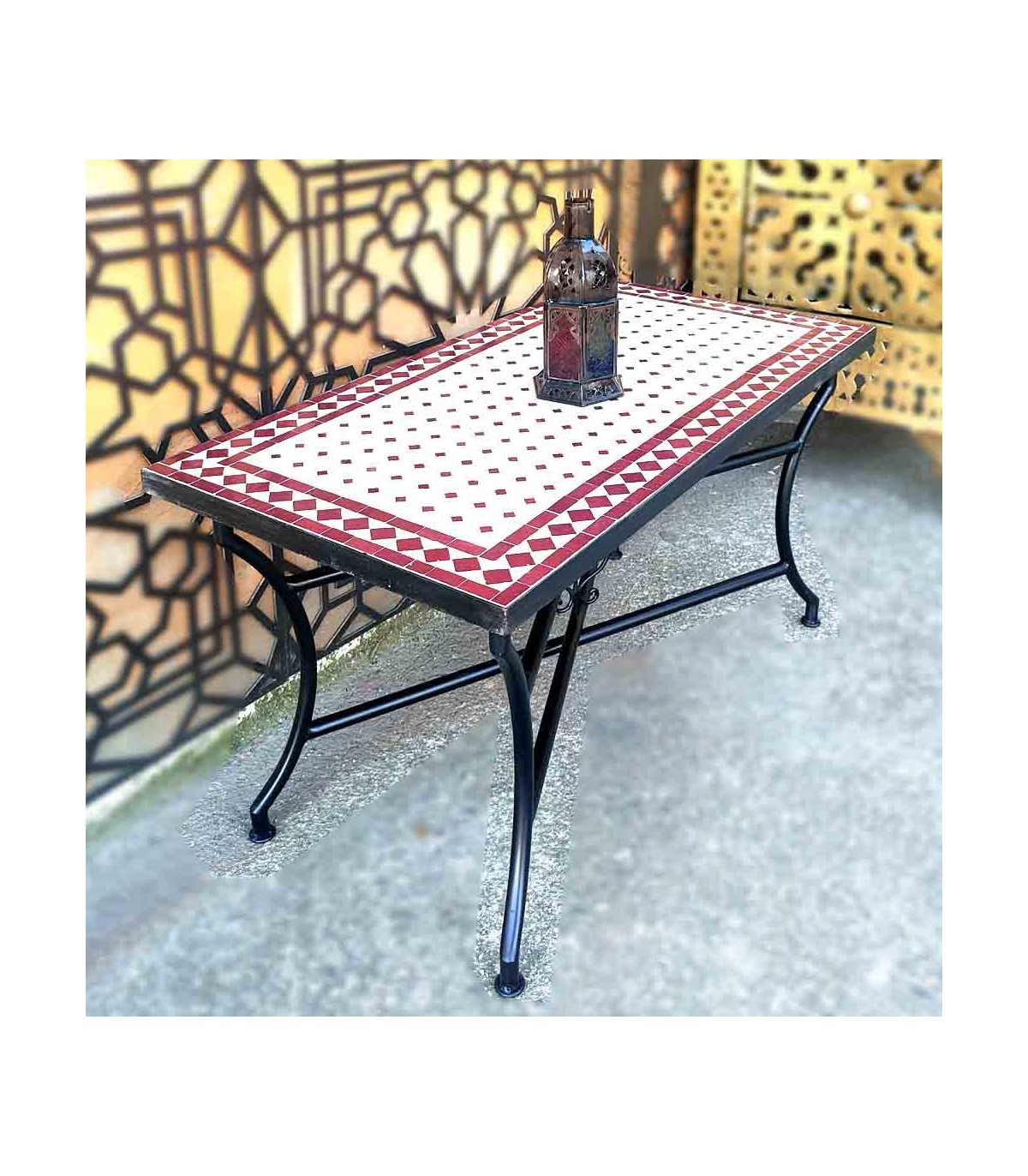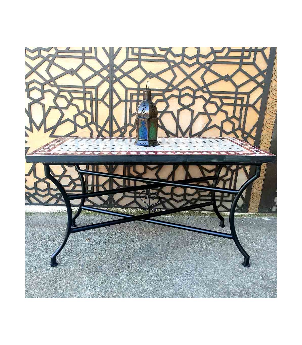 Tavolo di mosaico artigianale andaluso realizzato, progettato e assemblato in Marocco da maestri artigiani della famosa città di FEZ utilizzando l'antica tecnica del piastrellato zelige, insegnata dai maestri...