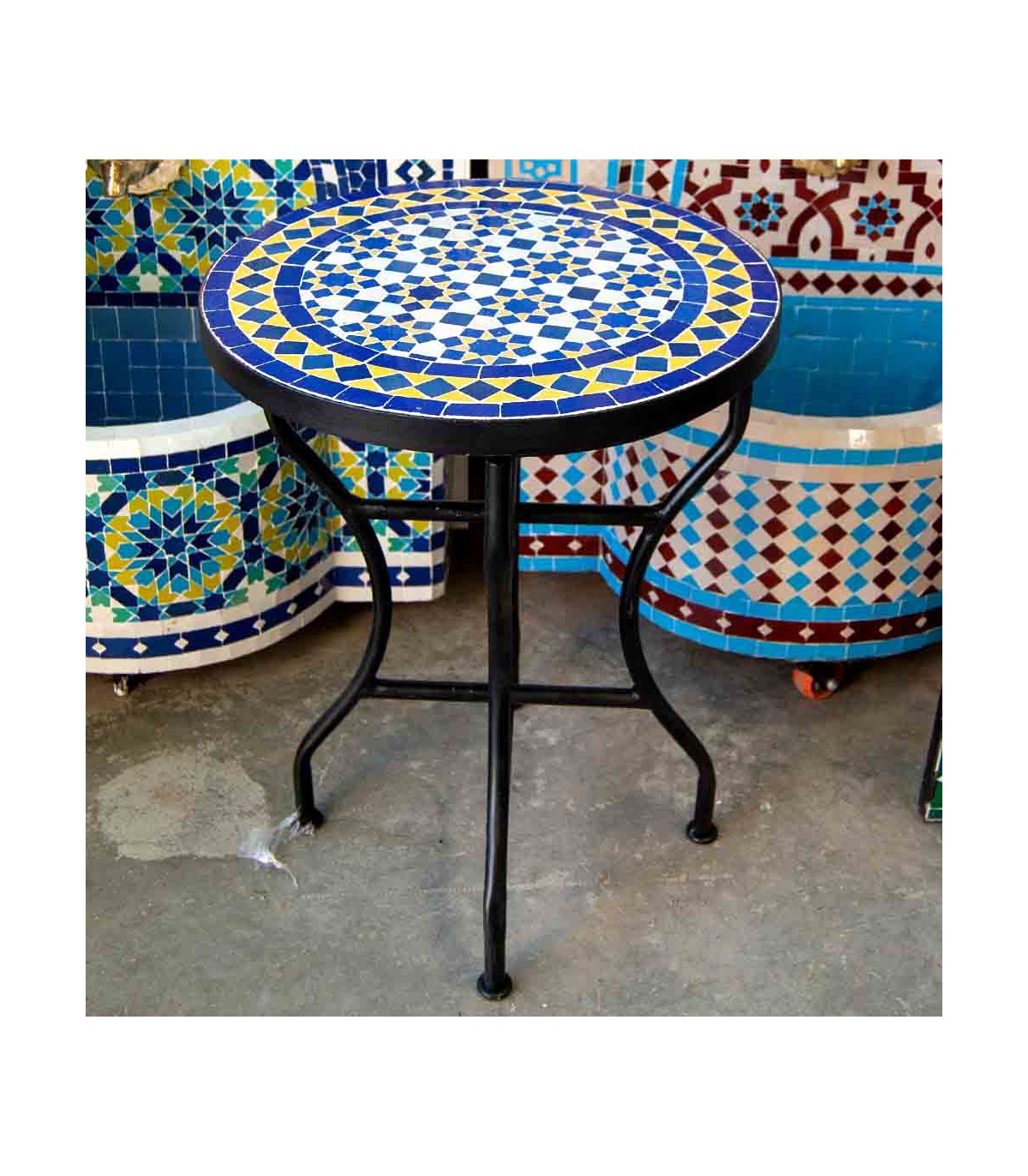 Tavolo in mosaico fatto a mano </ forte>Andaluso elaborato, progettato e assemblato in Maroccodai maestri artigiani della famosa città di FEZ utilizzando la tecnica ancestrale della piastrella zelige, insegnata...