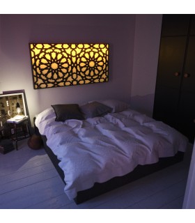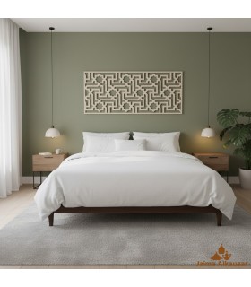 Testata del letto a griglia araba modello Alhambra.Design ispirato ai disegni geometrici e ai bordi arabi dell'Alhambra di Granada.Questa testata del letto in stile andaluso è ideale per la decorazione araba della casa.