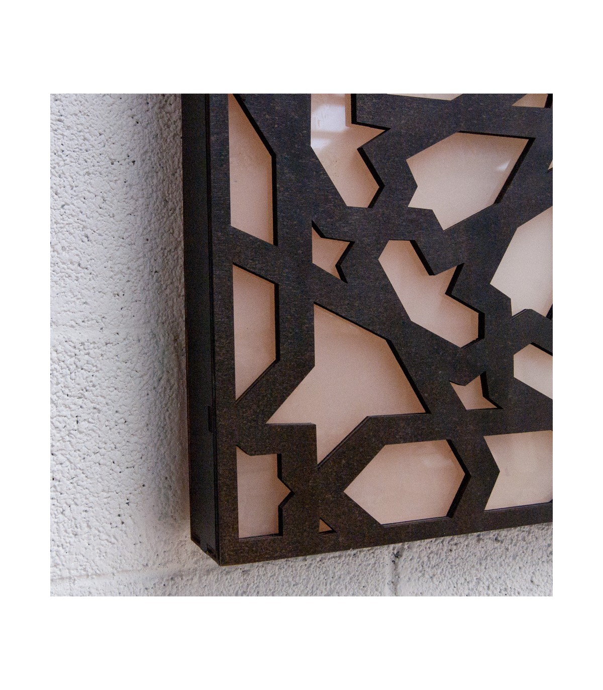 Testata letto Celosía Arabe, modello Alhambra, retroilluminata con luce led RGB + White, telecomando e collegabile al cellulare tramite bluetooth.