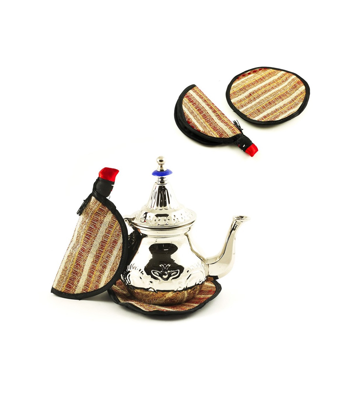Brilhante para o chá. Consiste em pegas e montanhas-russas para o chá. Servir para não queimar-te o que parte do chá é um indispensável em objeto de culturas árabe para servir os hóspedes chá e surpresa.