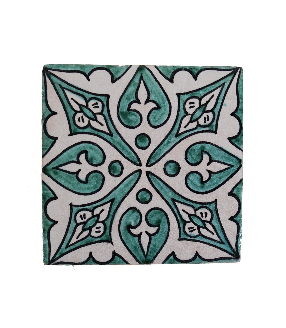 Telha de andaluz feita à mão com motivos árabes. Ideal para revestimento como peça decorativa, para criar um mosaico, guarnição, etc.