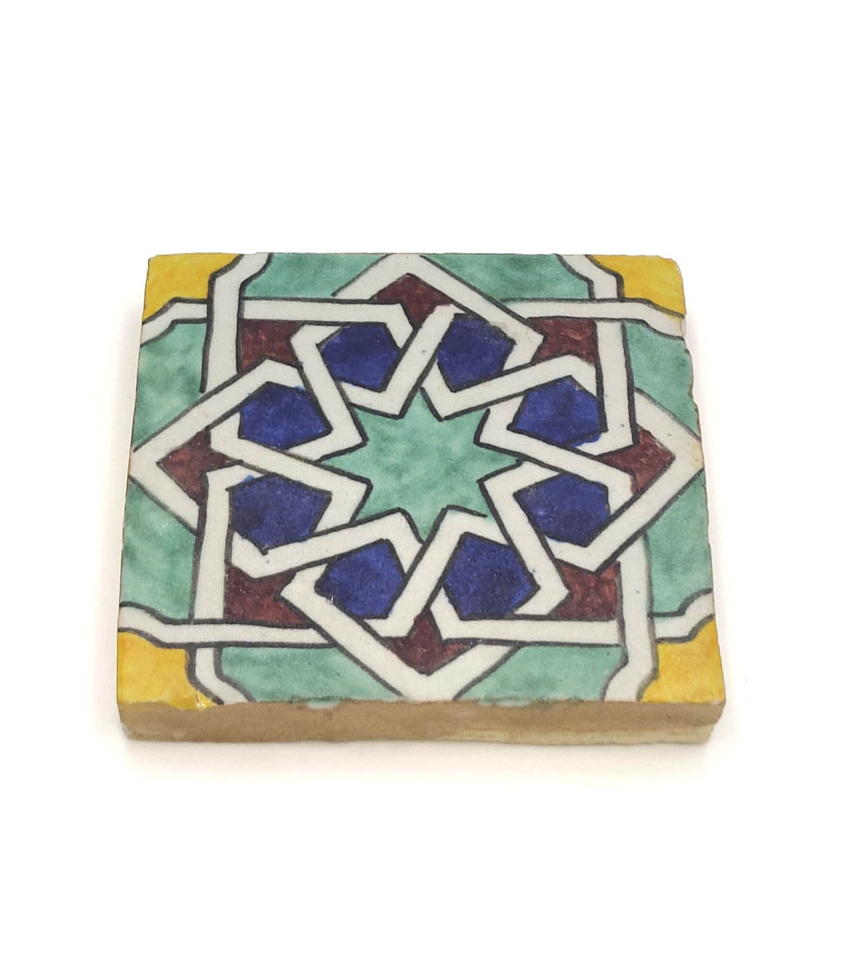 Azulejo andaluz artesanal com motivos árabes, ideal para pavimento, como peça decorativa, para criar um mosaico, saia, etc. Medidas: 10 x 10 cm Espessura: 15 mm +/-