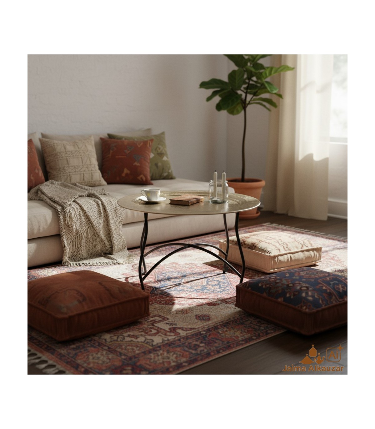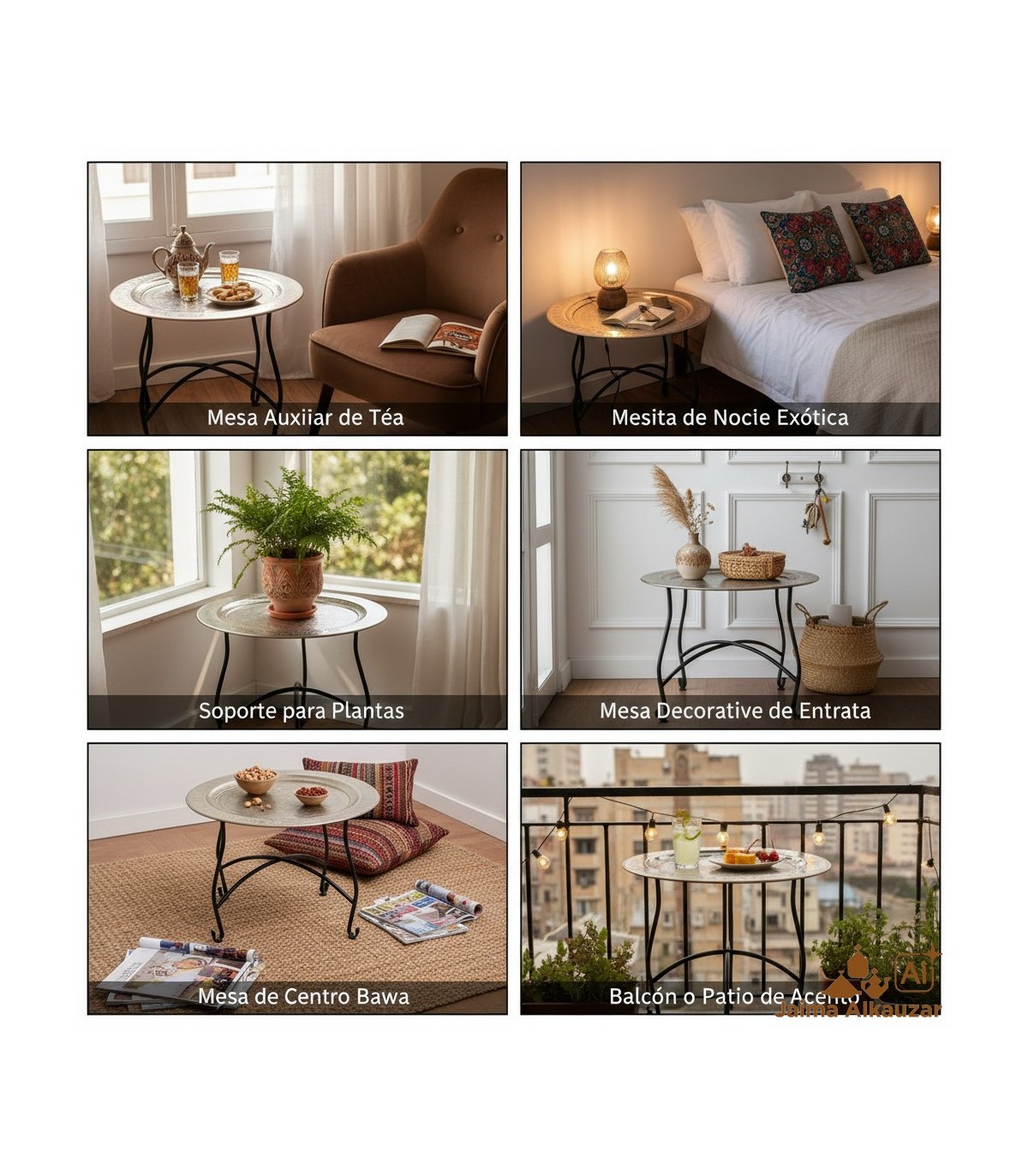 Teahouse mesa redonda. Gravada com motivos árabes.