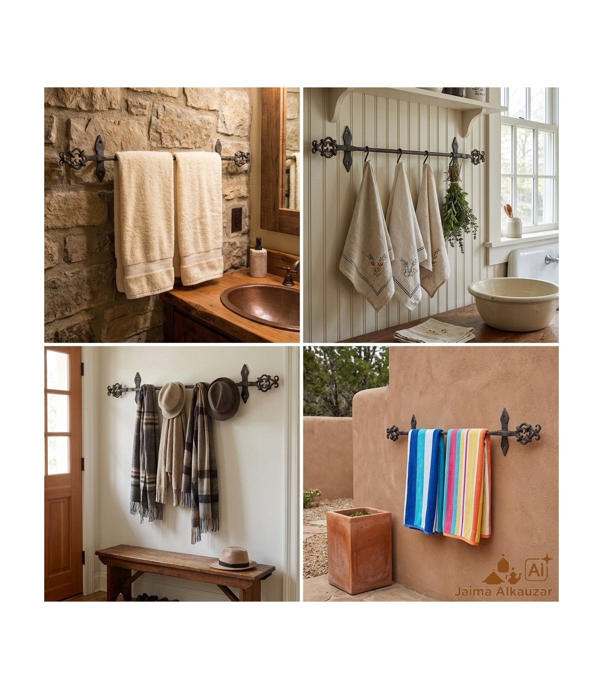 Cremalheira de toalha do ferro feita à mão usando técnicas ancestrais herdados de geração em geração em herreras as famílias. Todo o processo é manual pelo calor e forjados. As peças são unidas por rebites tradicionais. Nenhum parafuso não é usado. É um produto projetado para durar uma vida. Disponível em 3 modelos.