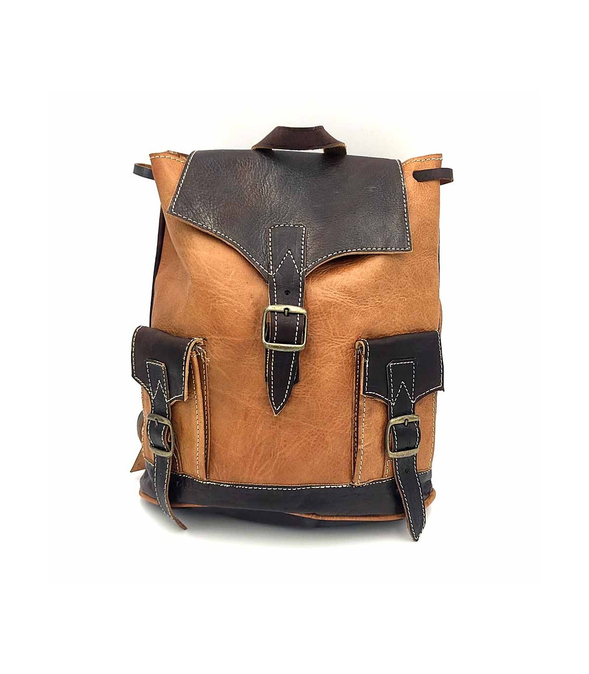 Mochila de couro artesanal. Fabricado no Marrocos Estilo Fesi. Artigos de couro de alta qualidade. Ideal para usar como bolsa ou para passeios. Tamanho muito prático perfeito para viagens curtas. p>