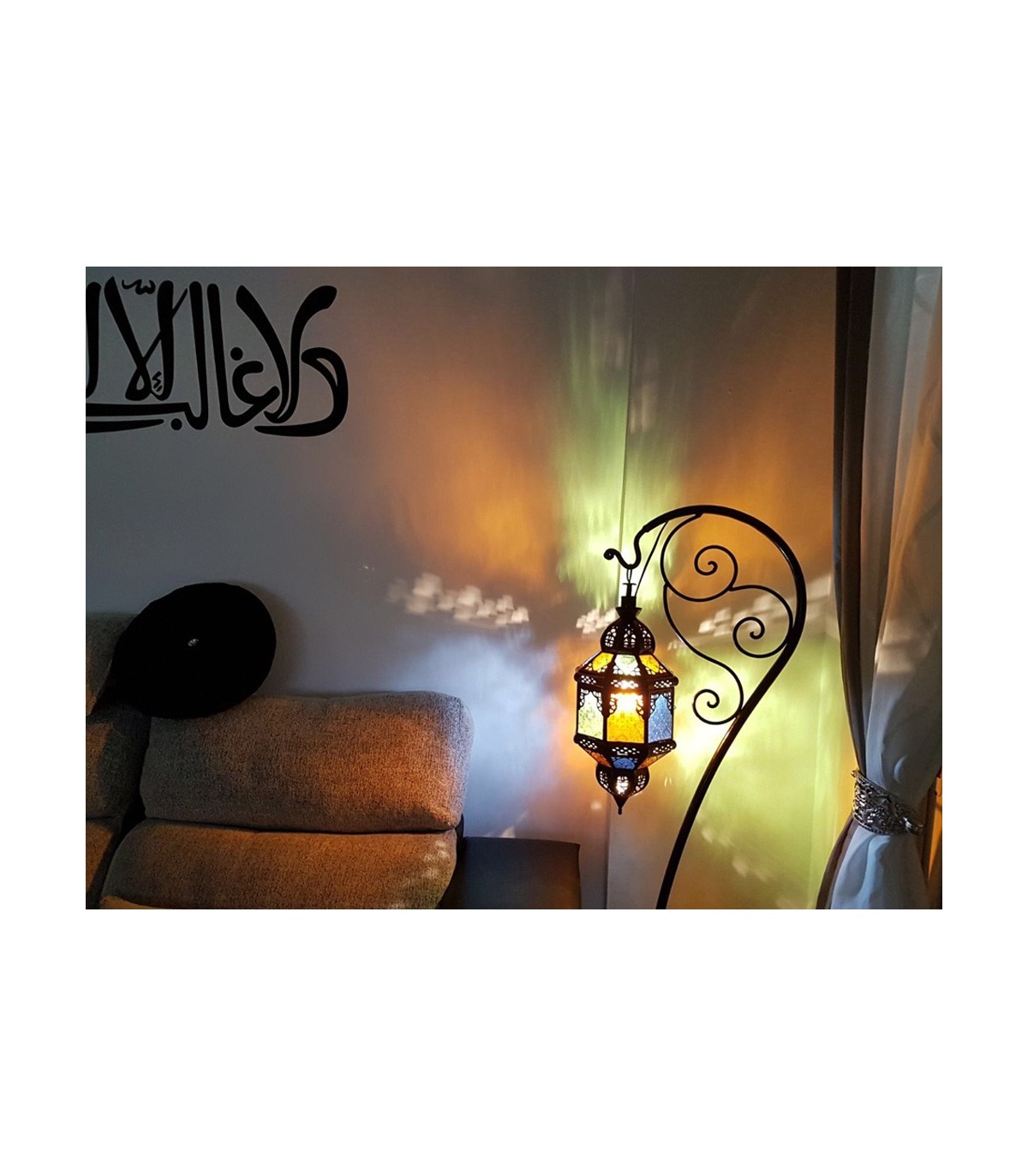 El pie de lampara que aparece en la foto, no es la que mandan con la compra, te envian uno bastante mas sencillo que no tiene nada que ver con la ofertada en la web. Enga̱o.***Jaima Alkauzar: son productos artesanales y a veces var