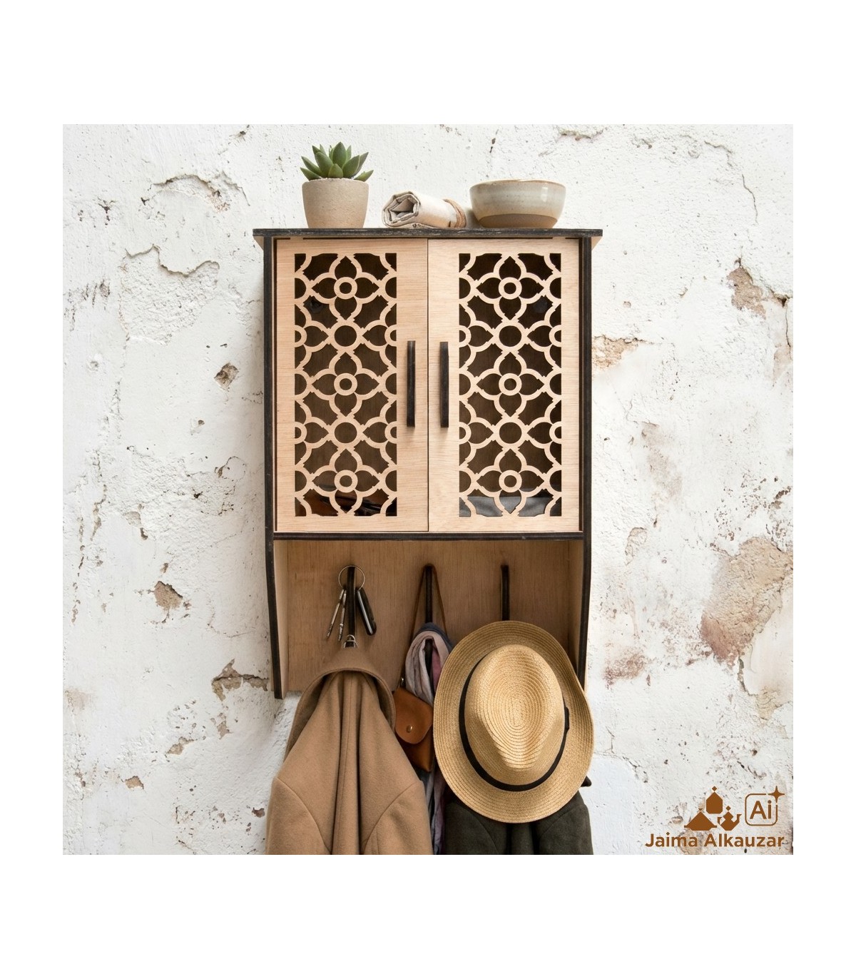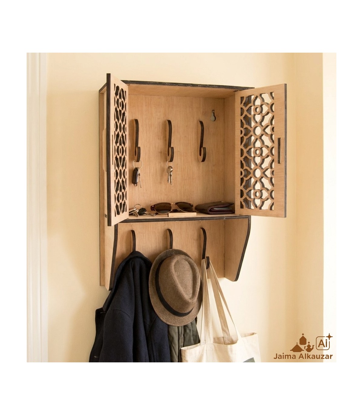 Porta-chaves artesanal feito e forjado à mão em Marrocos por um mestre ferreiro tradicional. O design é o de uma chave antiga. Possui 2 cabides. É fixado na parede com 2 parafusos.