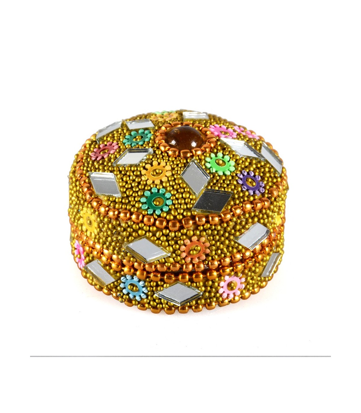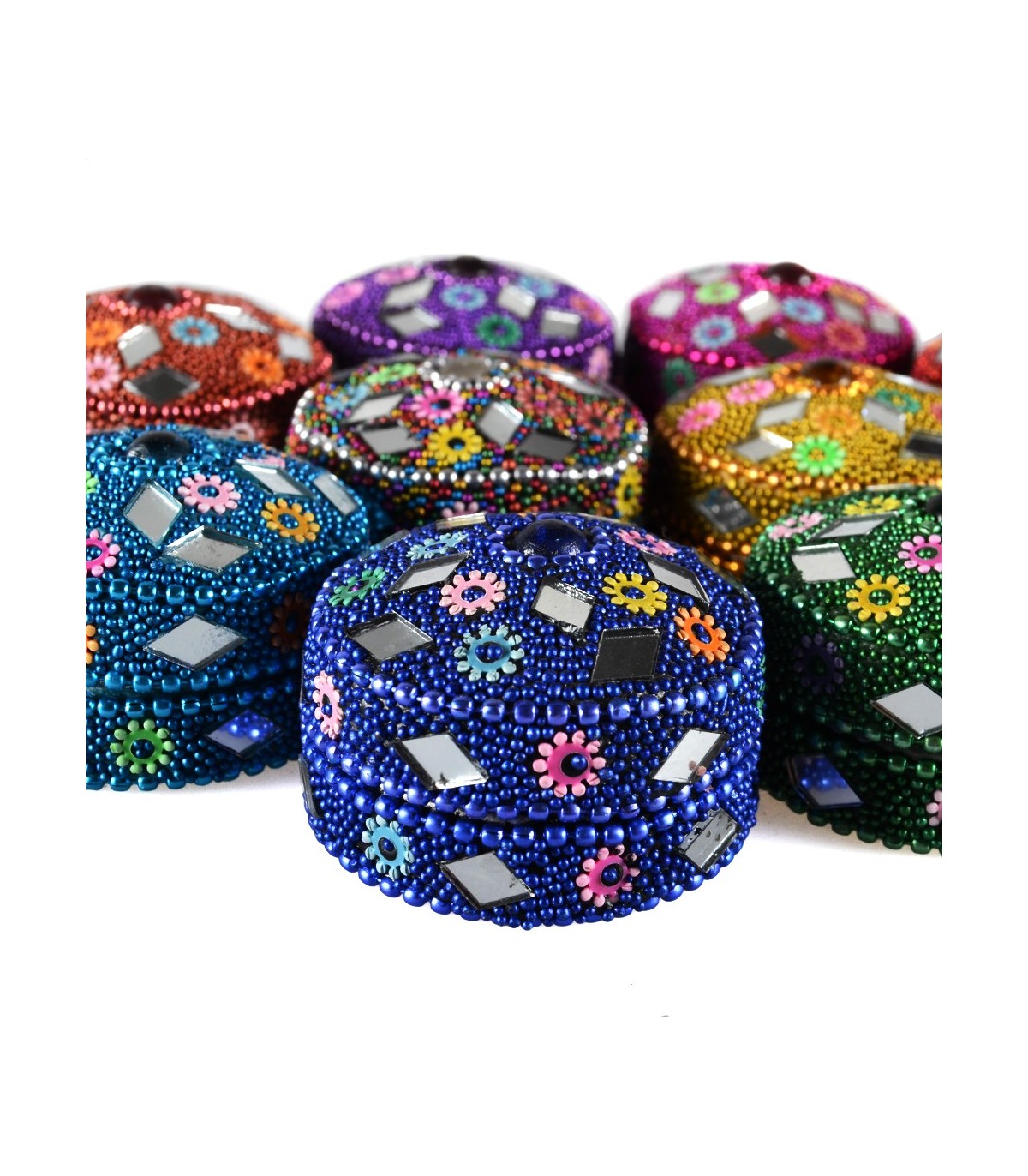 Branco Baulcito do Egito com incrustação de madrepérola. Interior forrado em veludo. Dimensões: 6 x 6 x 9 cm.