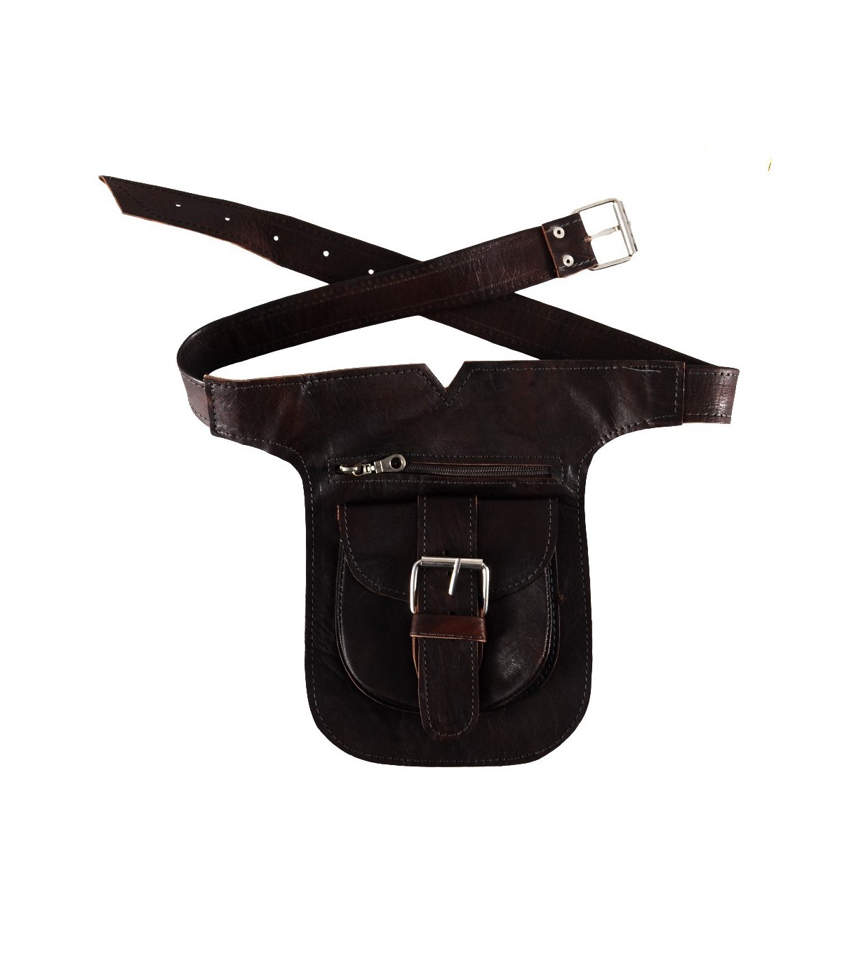 Pochete artesanal, 100% couro. Possui 1 bolso frontal com fivela e 2 bolsos com zíper, um na frente e outro atrás. </ forte>