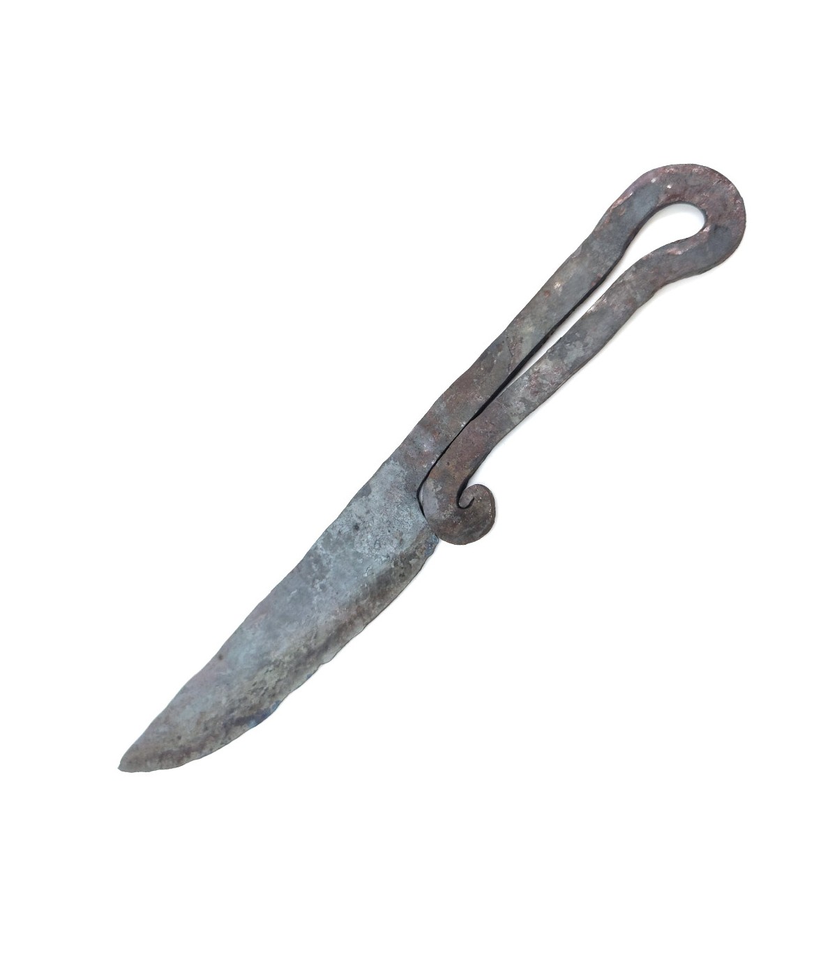 Faca, punhal ou punhal rústico estilo andaluz de ferro forjado à mão. Cada peça é única, não há igual. Muito decorativo.