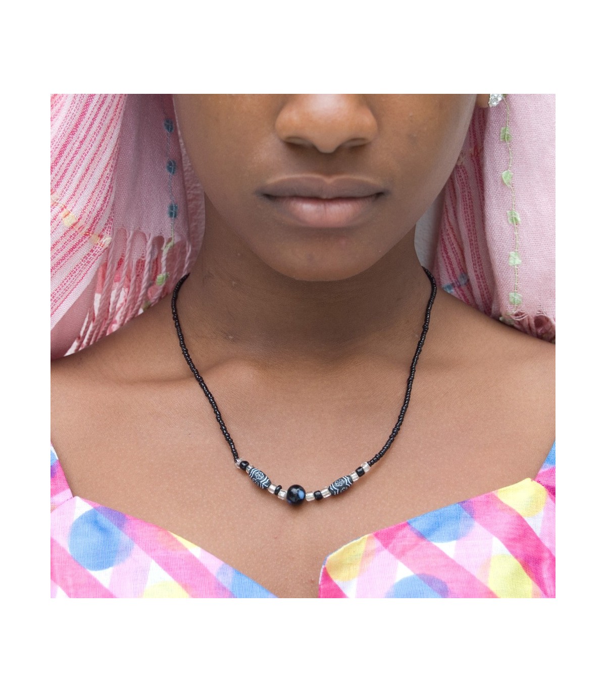 Colar artesanal na África. As cores brilhantes. Produto muito bonito e bem acabado.